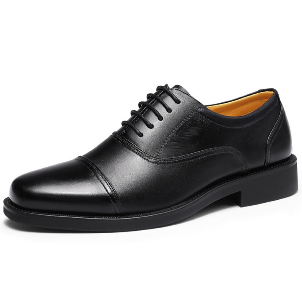 Zapatos de cuero de tres articulaciones de piel de vaca de primera capa para hombre, zapatos de cuero formales de tres secciones con cordones de piel de vaca de tres puntas