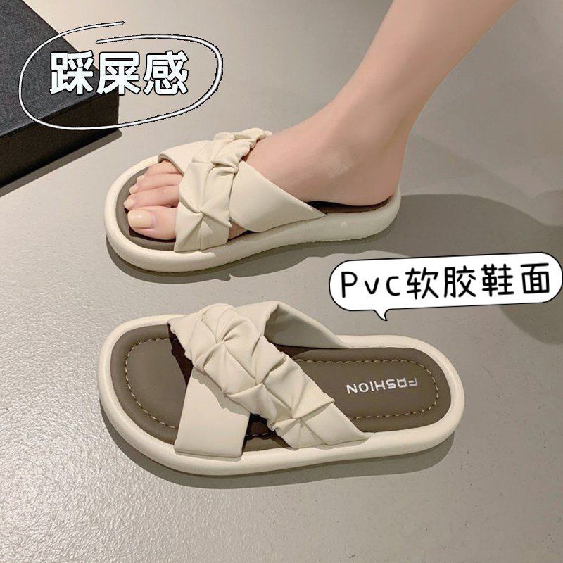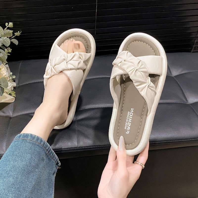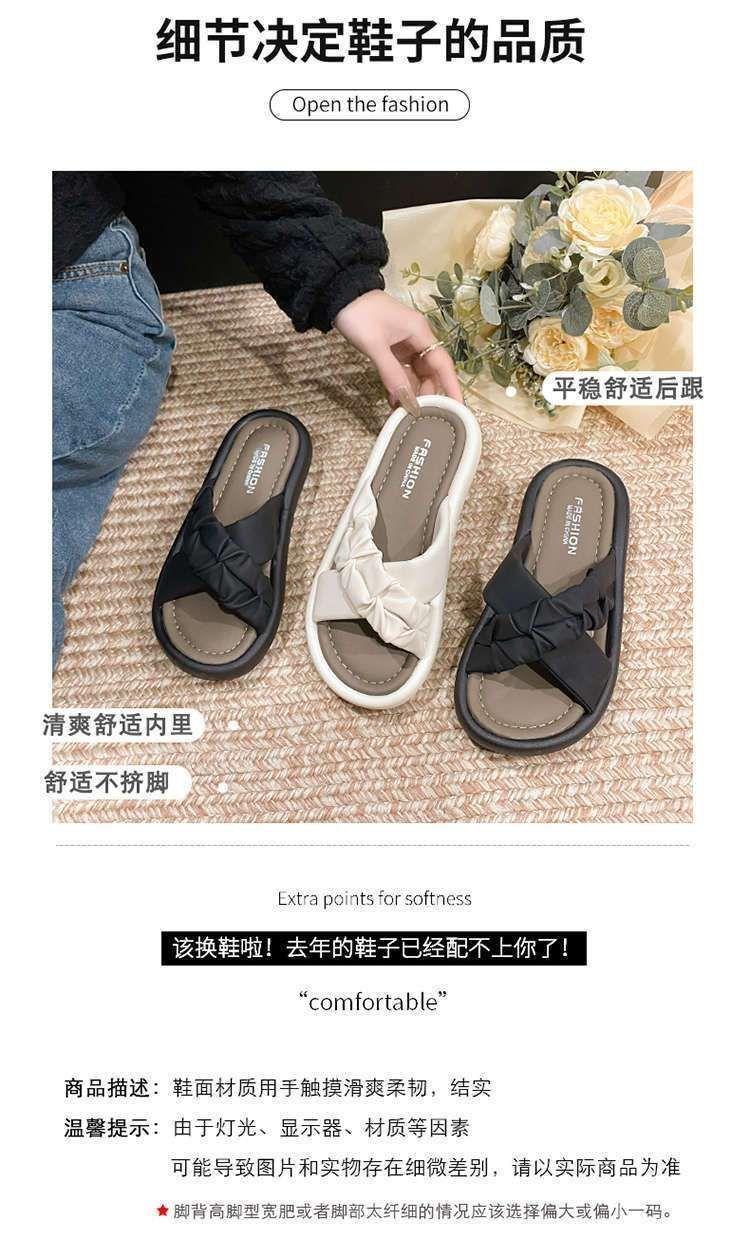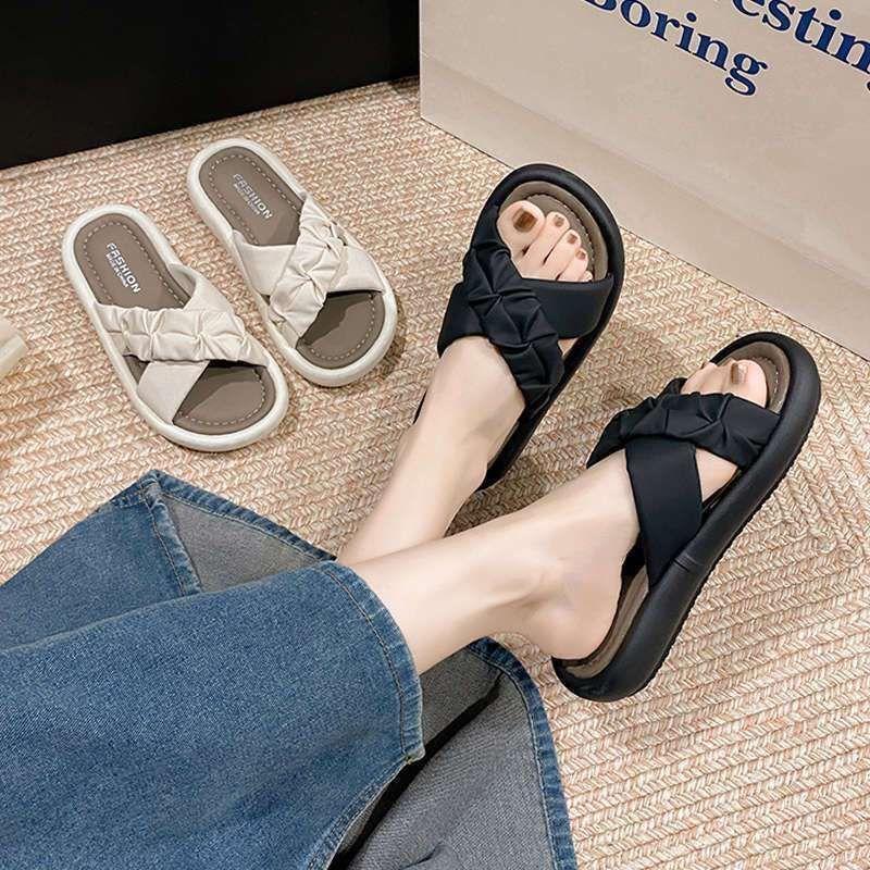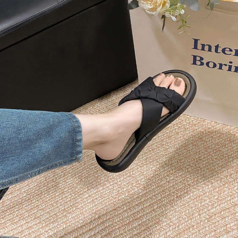 Pantuflas de Verano Estilo Francés Nuevo para Mujer para Usar de Suela Plana Cruz Moda Suela Suave Casual Vacaciones Sandalias de Playa Negro