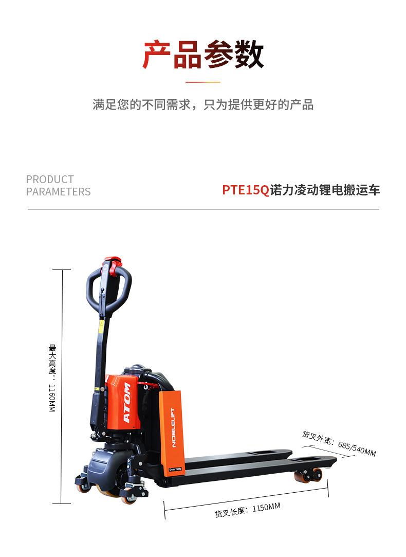 Nori Ling PTE15Q Lithium Carga Rápida Camión Hidráulico Montacargas Eléctrico 1.5 Toneladas Camión Totalmente Eléctrico