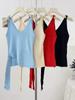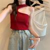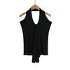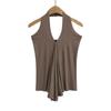 Deseo Puro Sexy Top Irregular sin Mangas para Mujer Francés Cuello en V Cuello Colgante Camisola Chaleco Tejido de Seda de Hielo