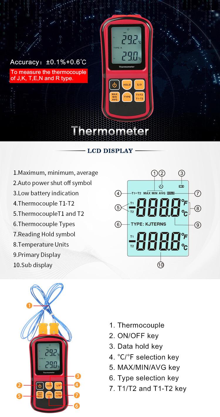 Biaozhi Gm1312 Termómetro de Contacto Termopar Termómetro Termopar