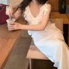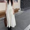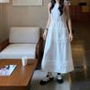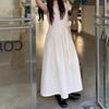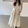 Verano 2025 Nuevo Estilo Estilo Francés Adelgazante Falda con Cordones en la Cintura Socialité Cuello Francés Vestido sin Mangas para Mujer