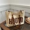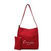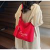 Bolsa Tote Simple Bordada Estilo Perezoso Gran Capacidad Bolsa de Lona Roja Bolsa de Clase para Estudiantes Universitarios Bolsa de Hombro para Viajeros para Mujeres