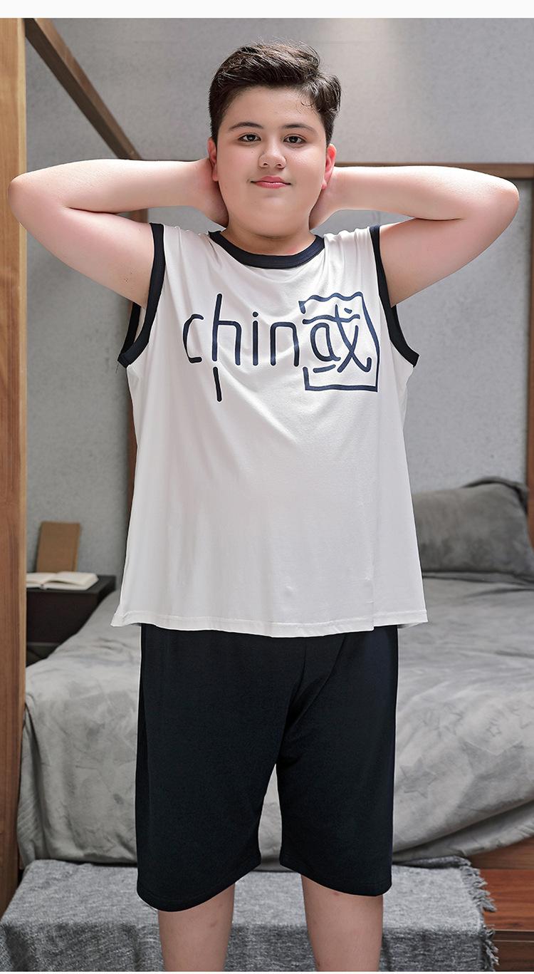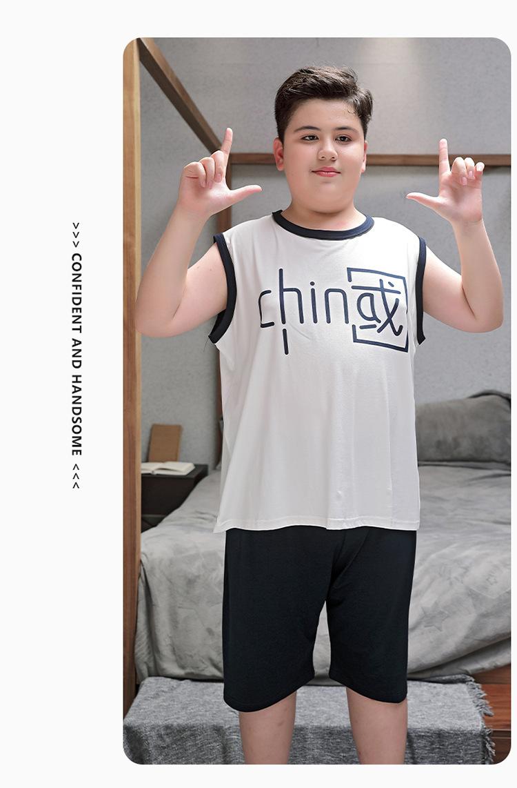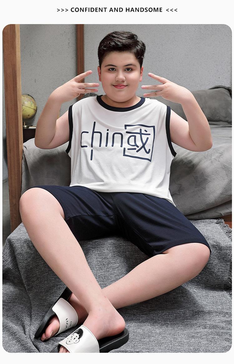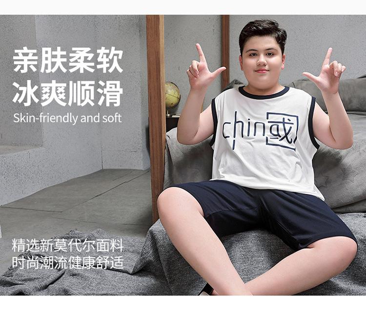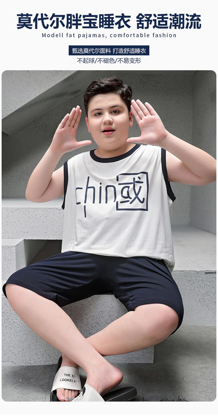 Pijamas de verano para niños gorditos, modal, de manga corta, talla extragrande, ropa de casa para niños gorditos de verano, fina, mediana-grande