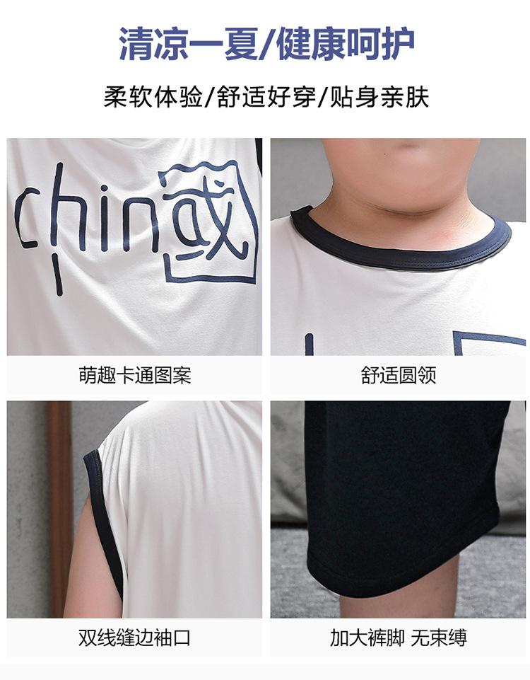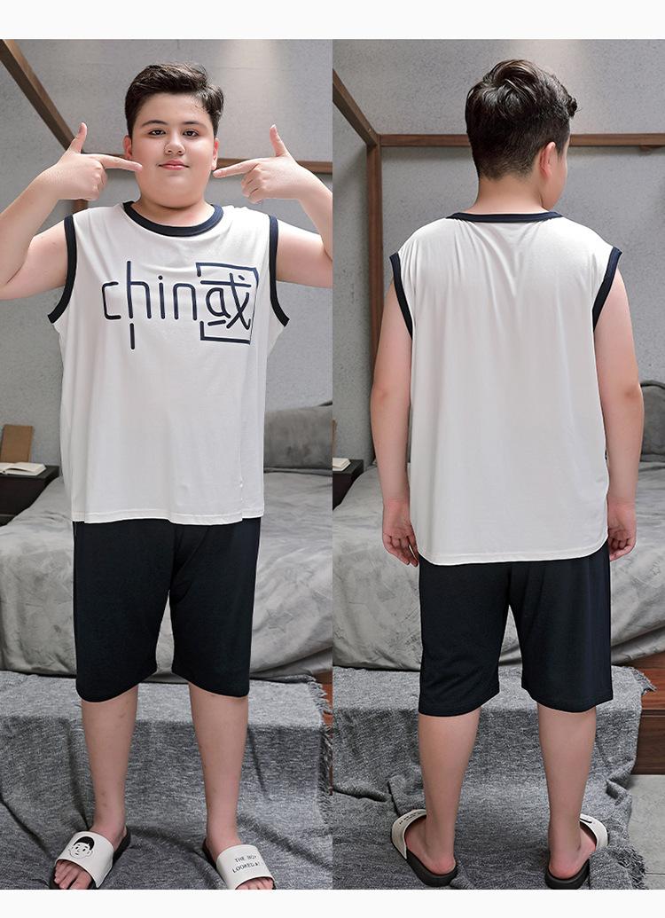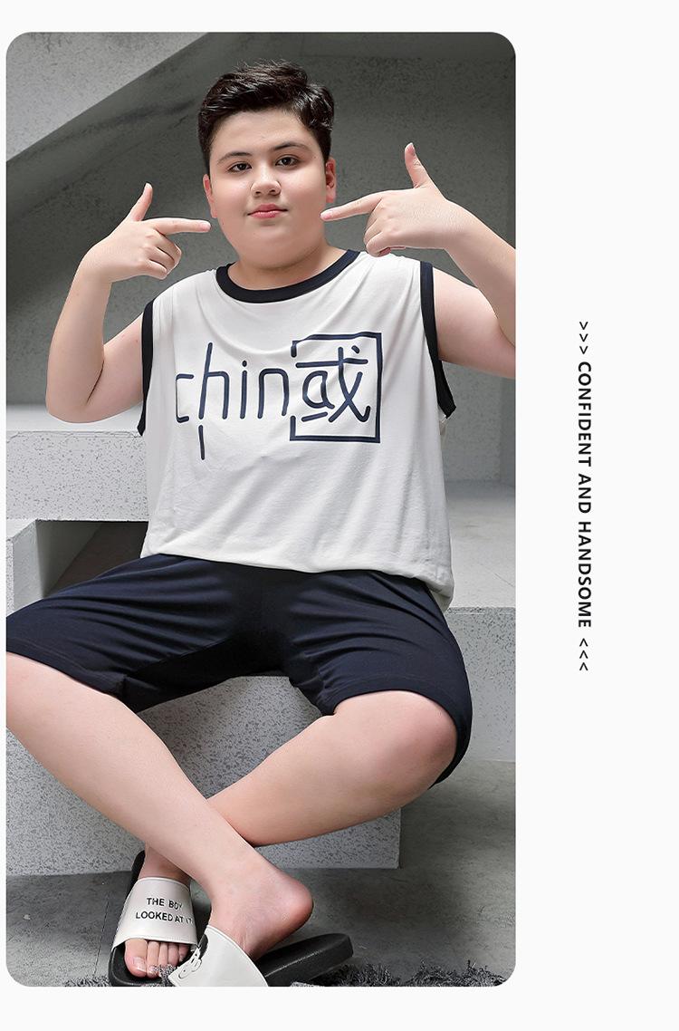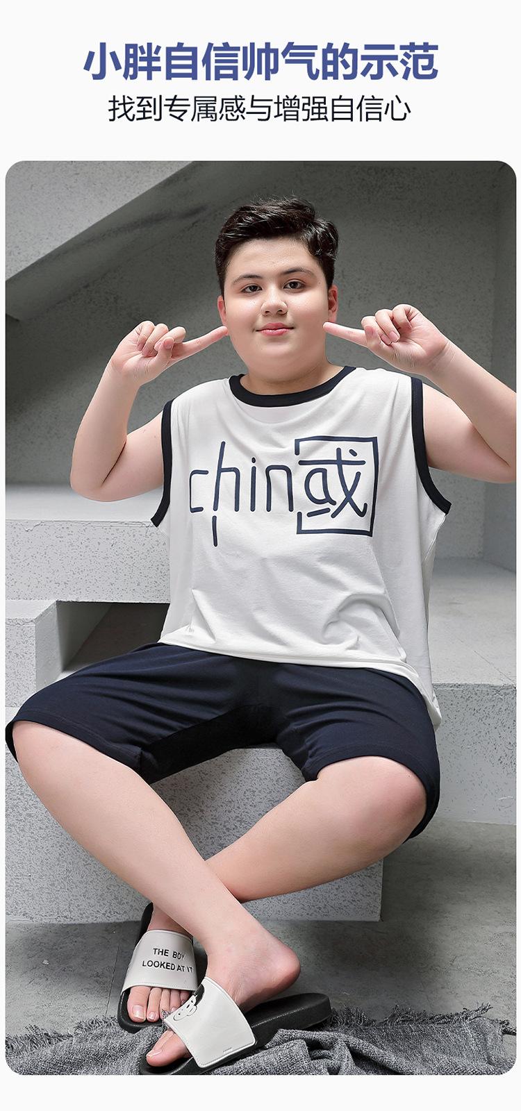 Pijamas de verano para niños gorditos, modal, de manga corta, talla extragrande, ropa de casa para niños gorditos de verano, fina, mediana-grande