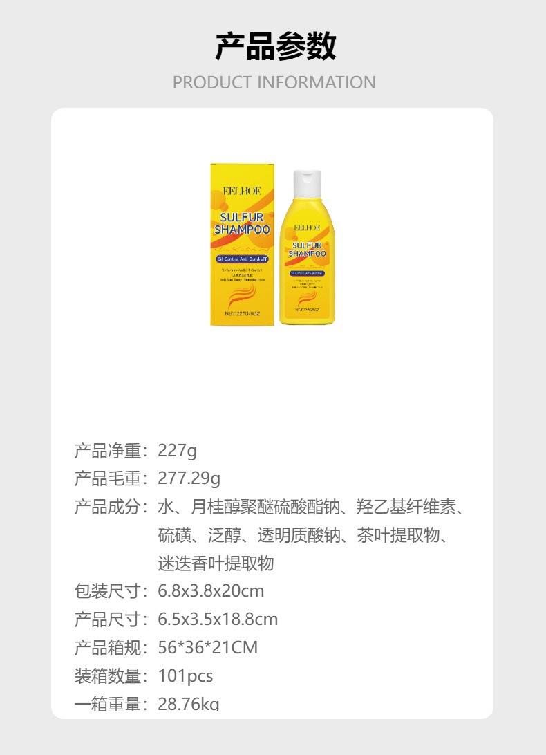 Eelhoe Shampoo Control de Grasa Azufre Limpieza Suave y Cuidado Shampoo para el Cabello
