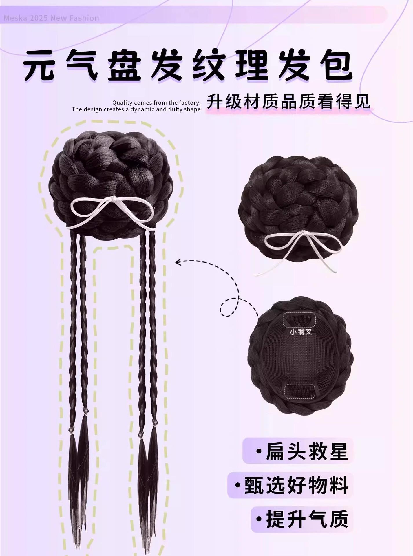 Moño Alto Postizo para Mujer con Peinado de Moño Texturizado, Pieza de Cabello Realista al Estilo Chino Nuevo