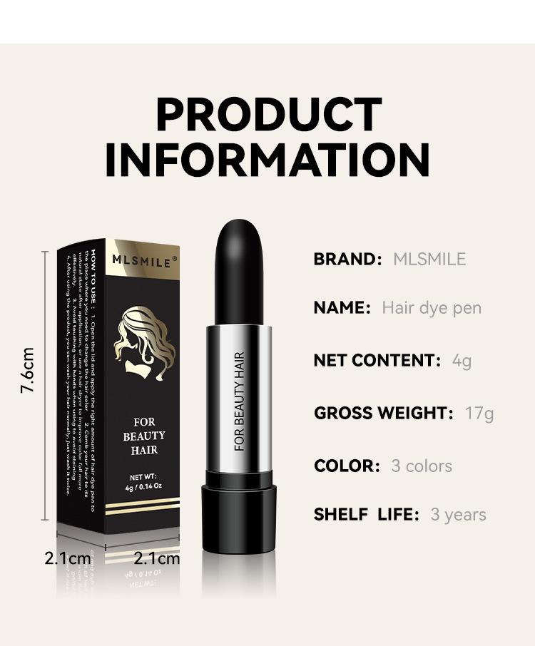 Pluma Desechable para Tinte de Cabello Transfronteriza para Cubrir las Canas y Convertirlas en Cabello Negro, Tinte Temporal para el Cabello Estilo Barra de Labios de Peluquería y Peluquería