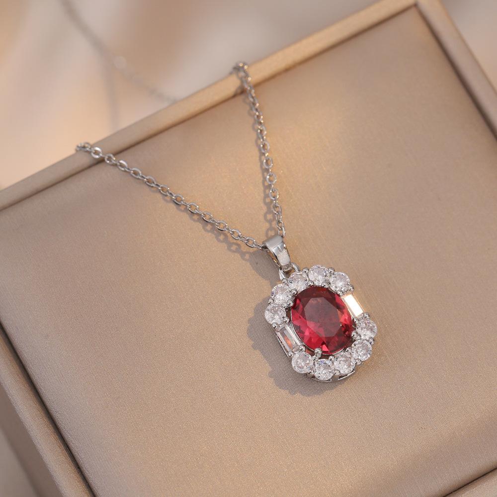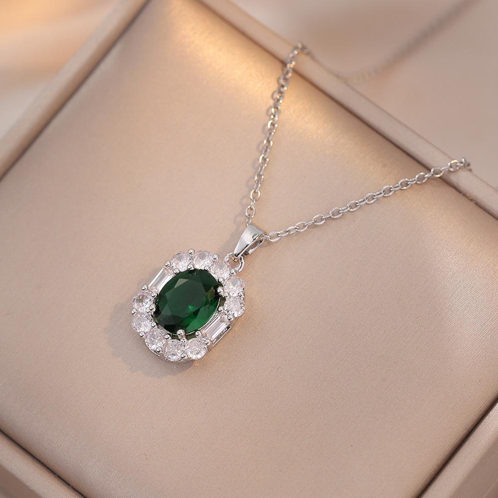 Collar para Mujer, Colgante de Esmeralda Rubí a la Moda, Simple Elegante, Joyería Versátil de Cadena para Clavícula