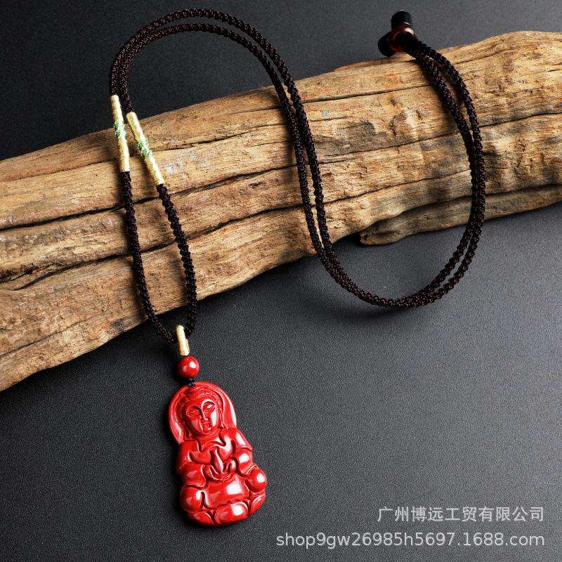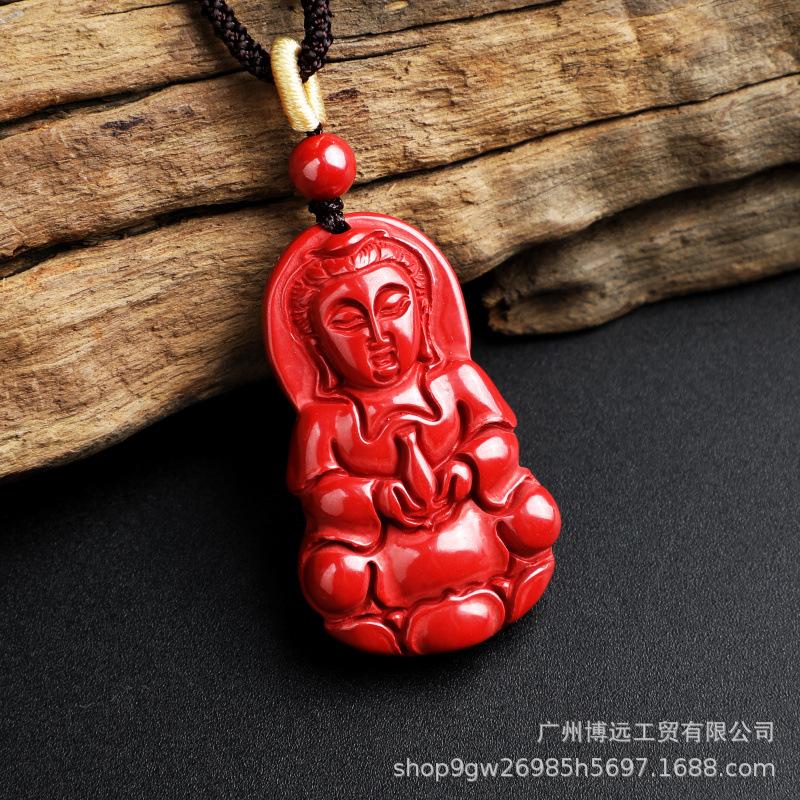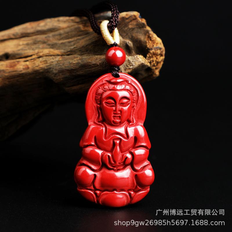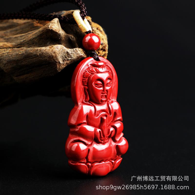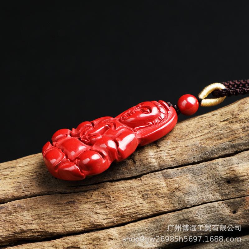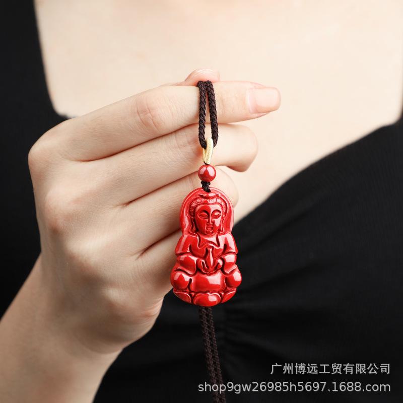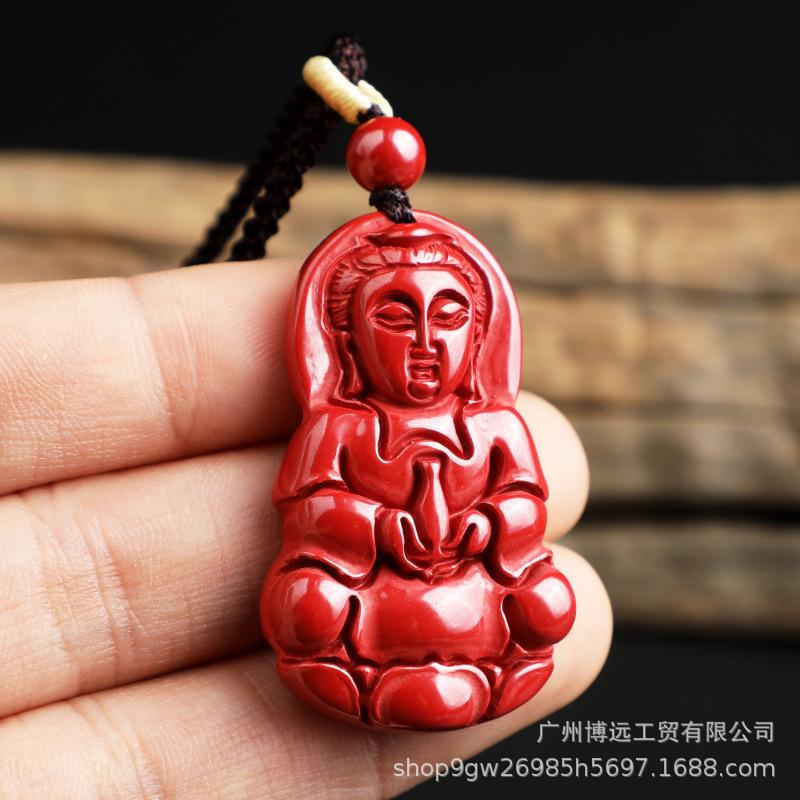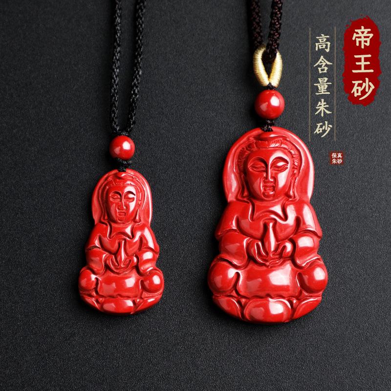 Collar Colgante de Cinabrio Mineral Crudo al por Mayor Arena Imperial Guanyin Bodhisattva Hombres y Mujeres Año del Zodíaco 2025
