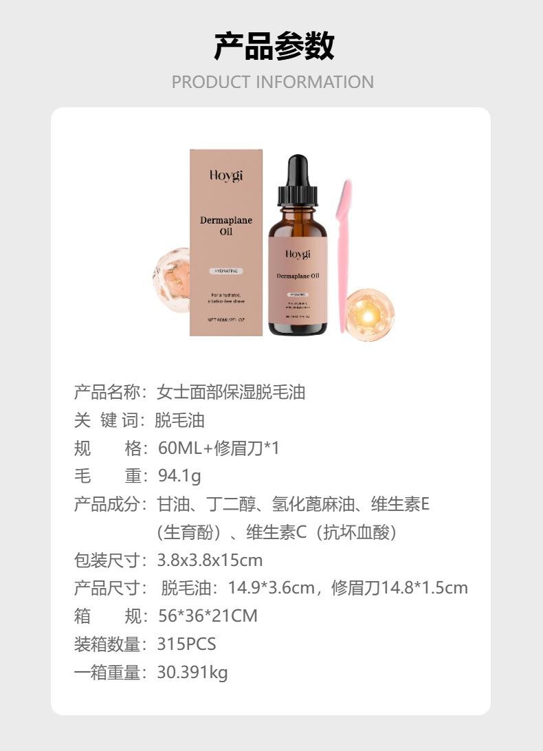 Aceite Depilatorio Facial Hidratante Hoygi para Mujeres Ingredientes Suaves Cuidado Hidratante Piel Facial Suave Aceite Depilatorio