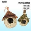 Nido para Pájaros de Cáscara de Coco Piel de Tigre Peonía Pájaro del Viento Loro Nido para Pájaros Mascota Nido Cálido de Hierba Suministros Juguete para Pájaros