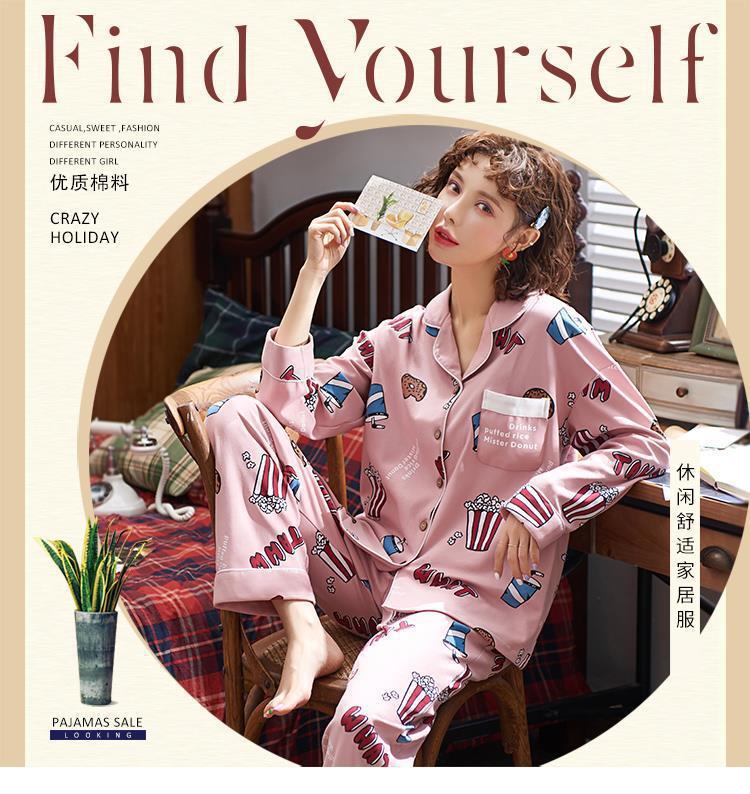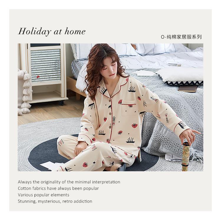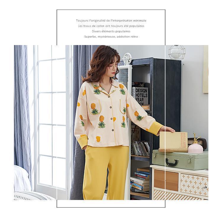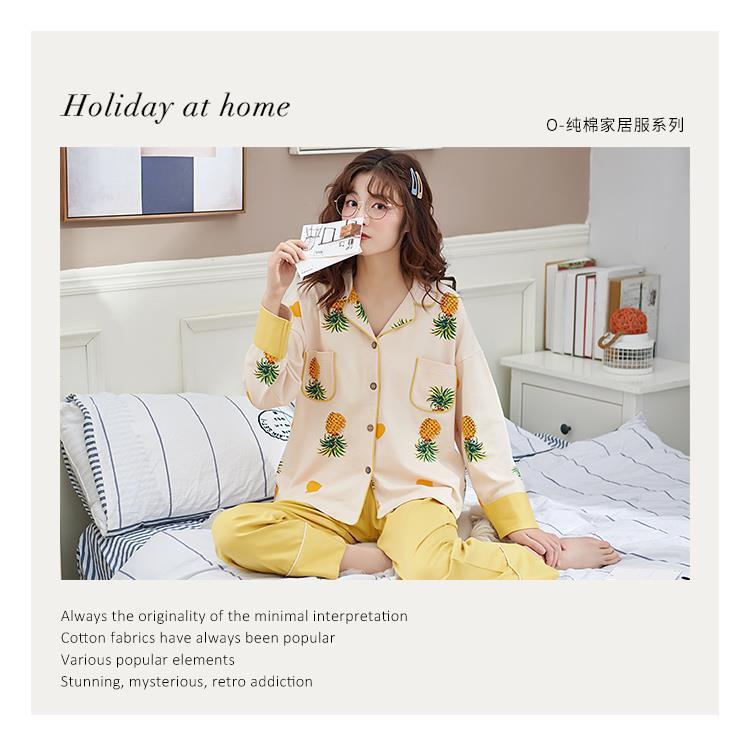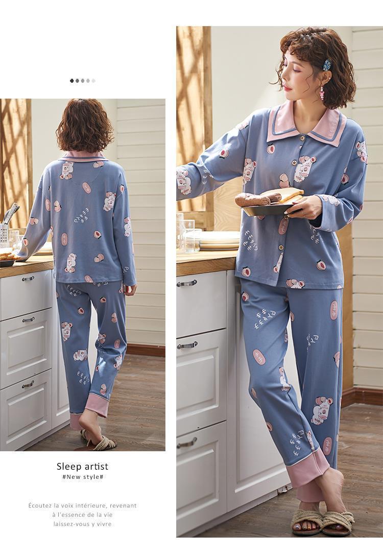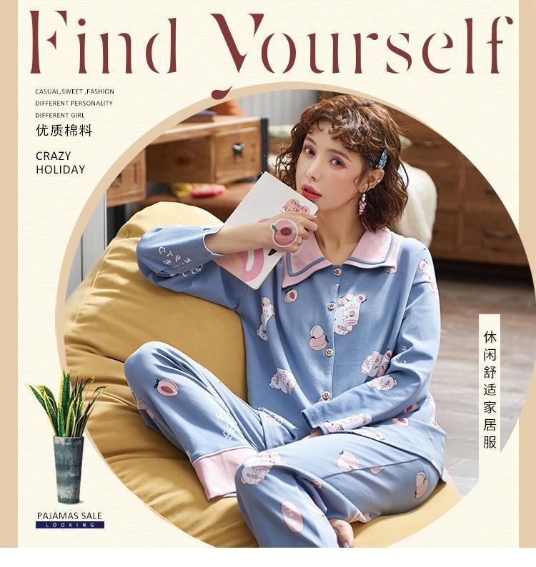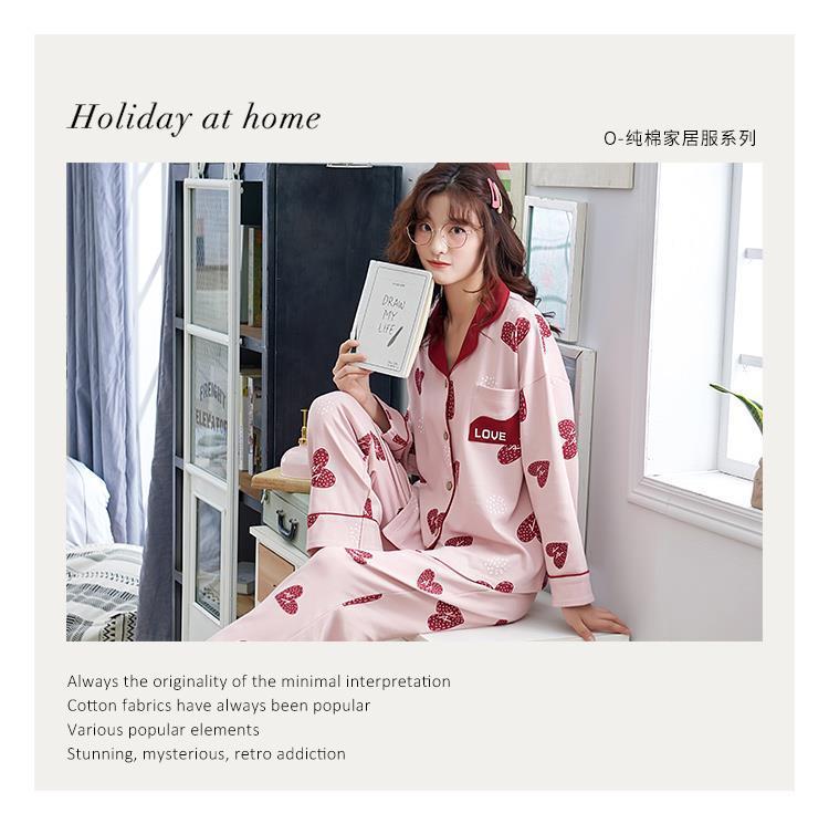 Compra Pijama para Mujer Otoño 100% Algodón Manga Larga Algodón Primavera y Otoño para Mujer Verano Cárdigan Delgado Ropa para el Hogar Traje Verano al por mayor en Joom.pro