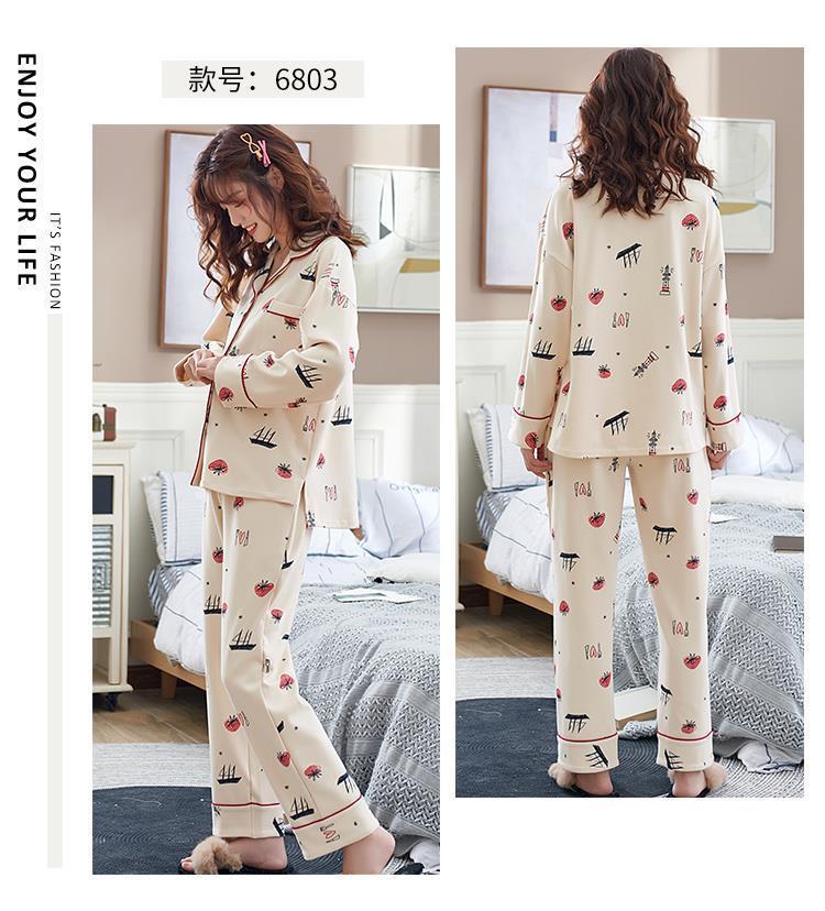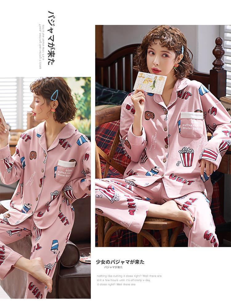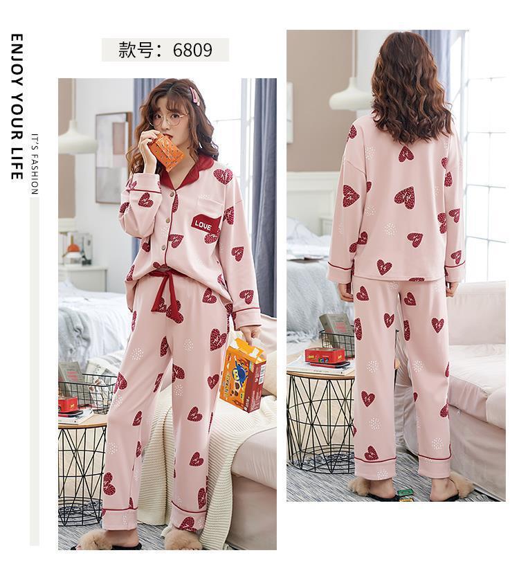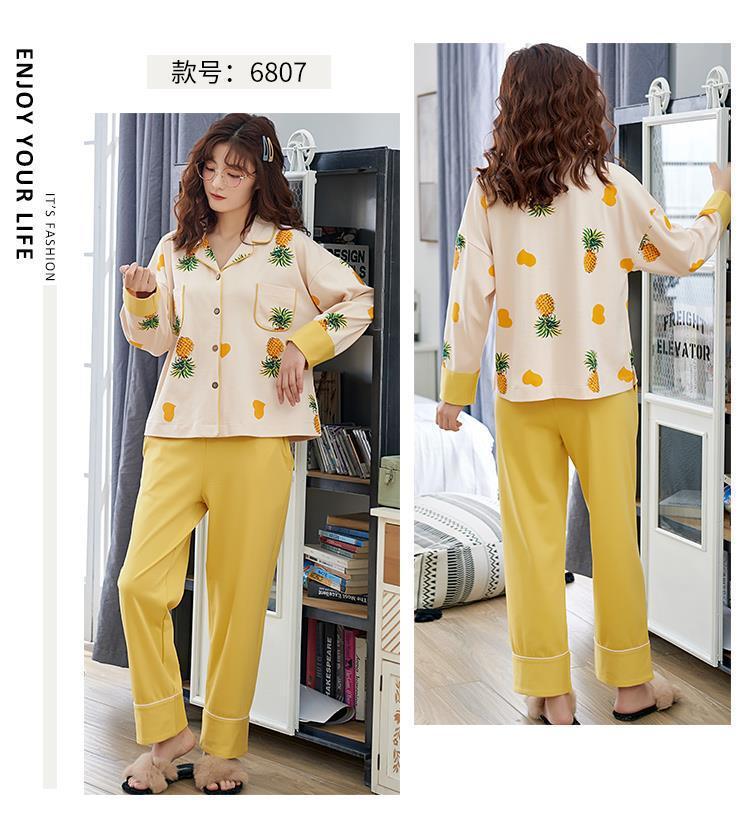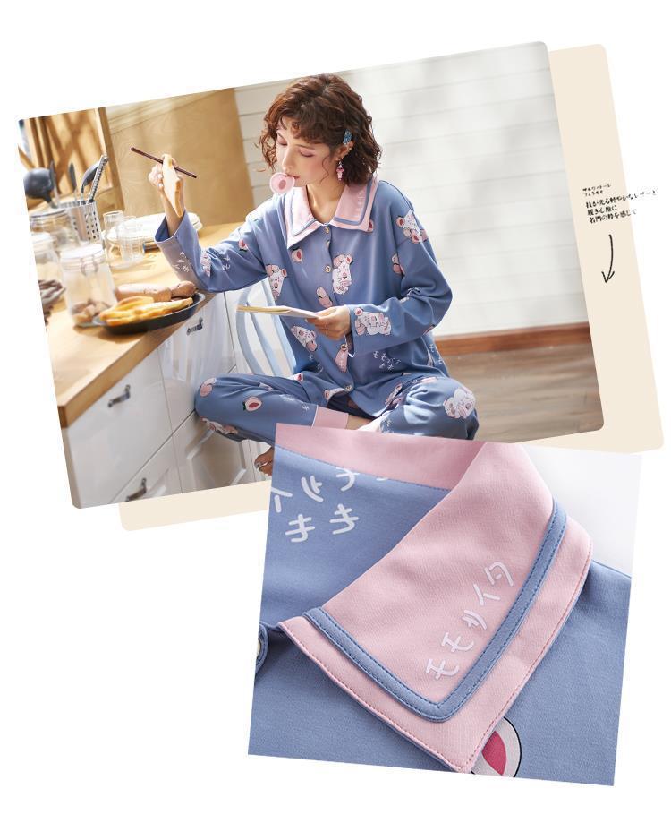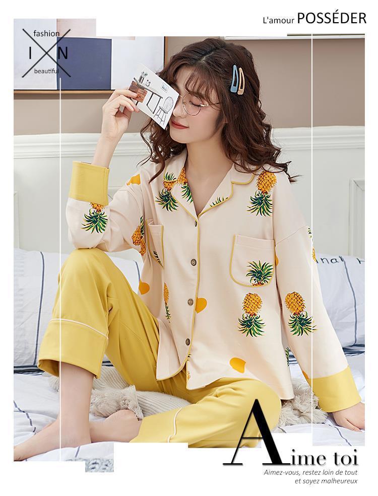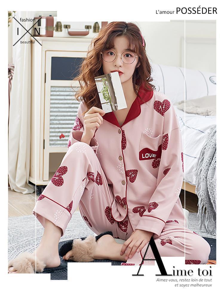 Compra Pijama para Mujer Otoño 100% Algodón Manga Larga Algodón Primavera y Otoño para Mujer Verano Cárdigan Delgado Ropa para el Hogar Traje Verano al por mayor en Joom.pro