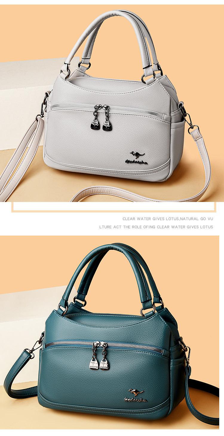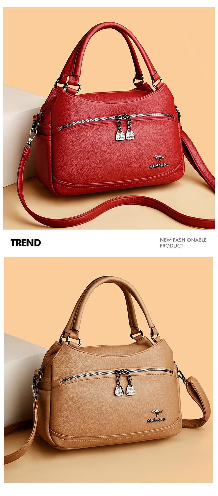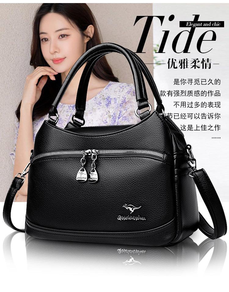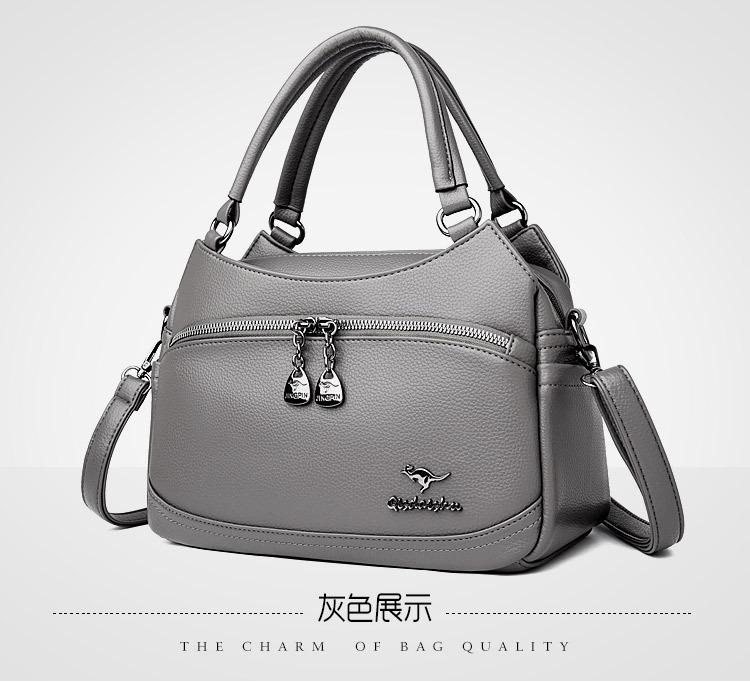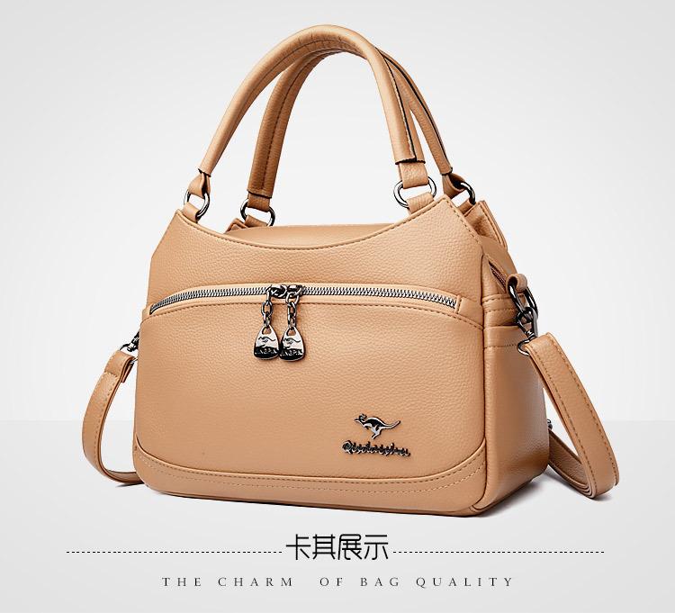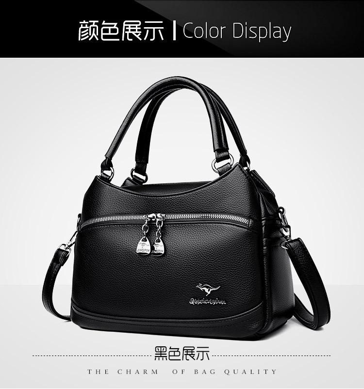 Bolso de mano vintage de piel suave para mujer, bolso de mano para madres de mediana edad, nuevo estilo, sencillo, multicompartimento, bandolera de gran capacidad.