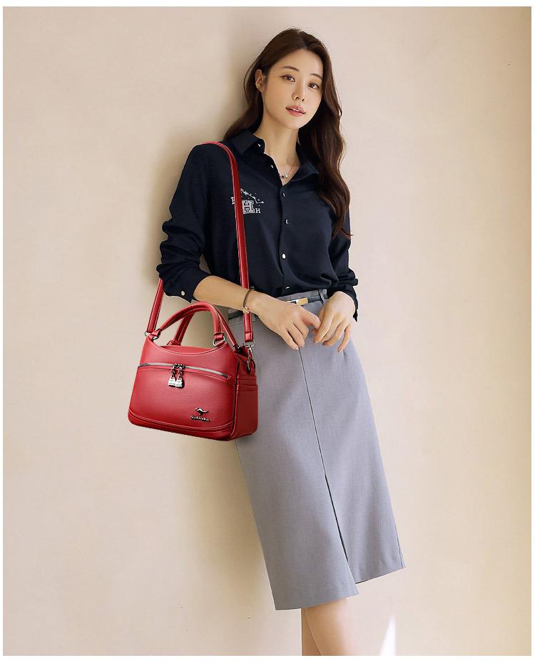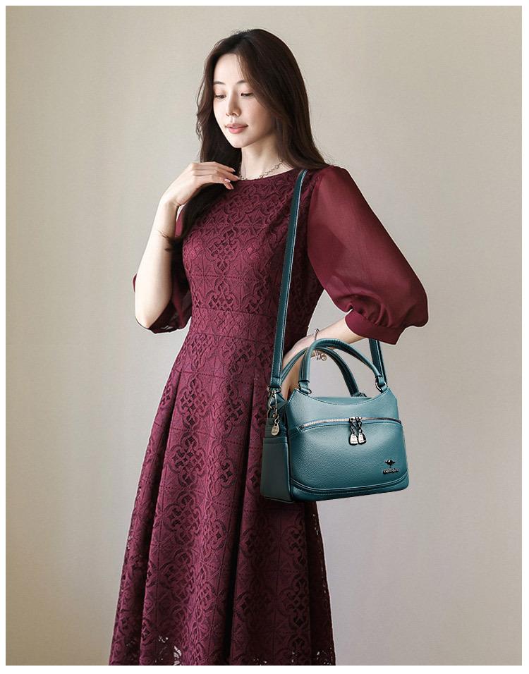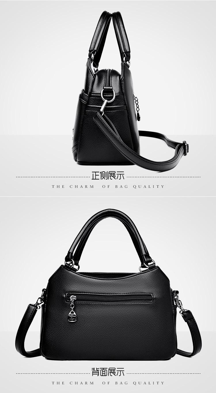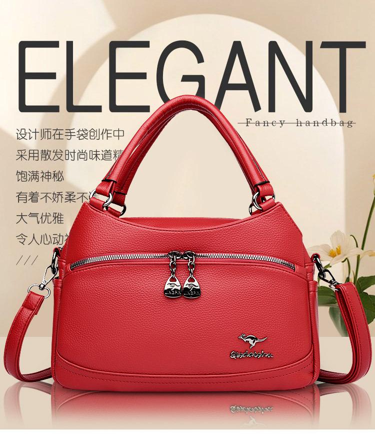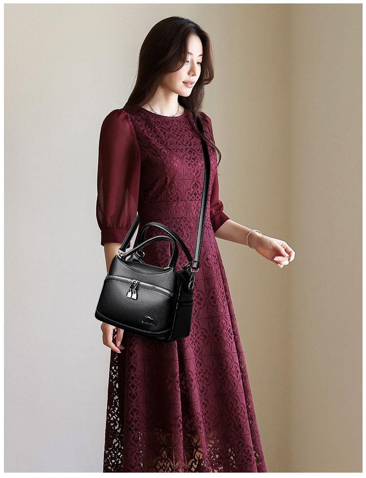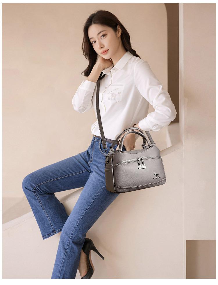 Bolso de mano vintage de piel suave para mujer, bolso de mano para madres de mediana edad, nuevo estilo, sencillo, multicompartimento, bandolera de gran capacidad.