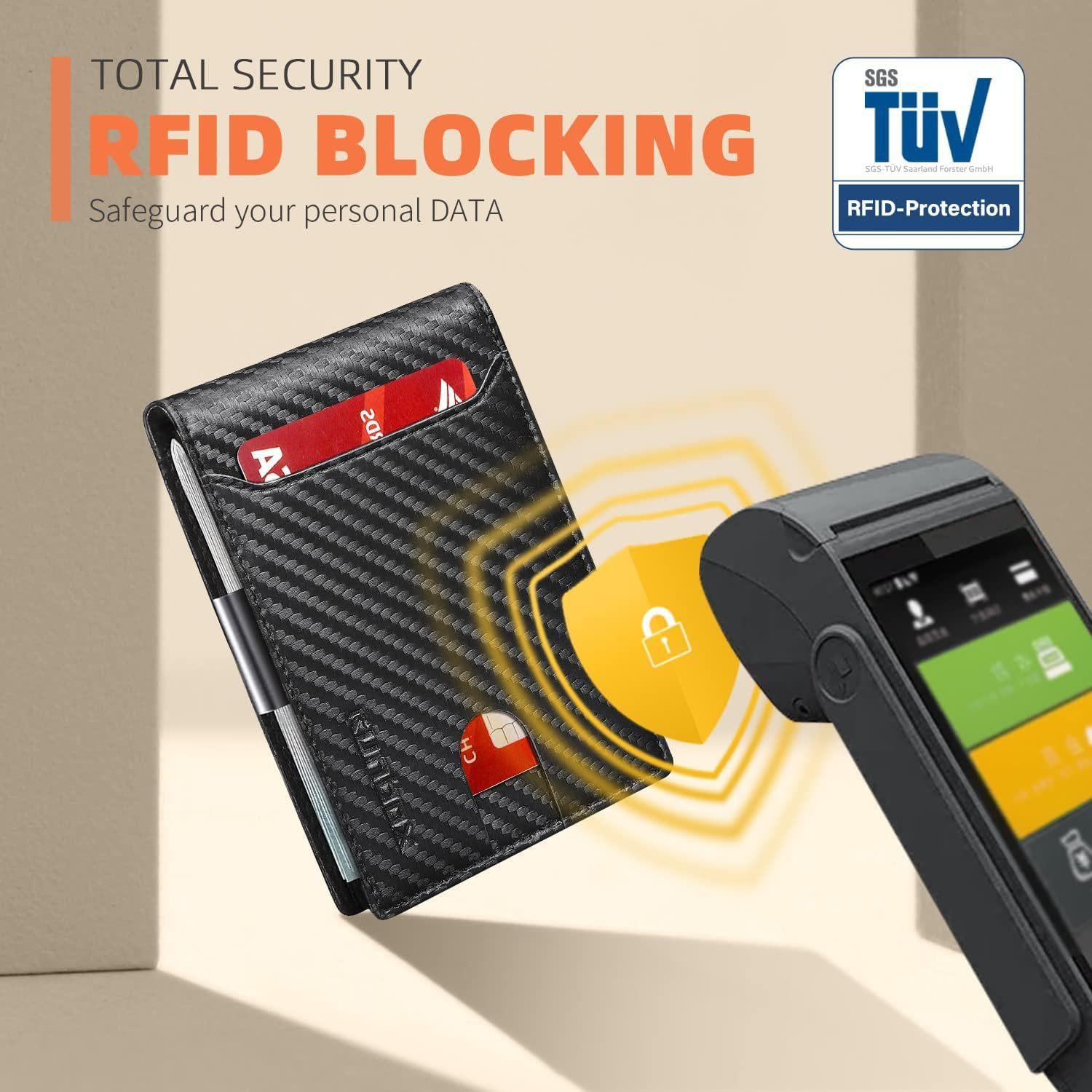 Billetera Personalizada para Hombre de Gama Alta Transfronteriza de Cuero Genuino para Hombre Tarjetero Clip para Billetes de Piel de Vaca Rfid Fibra de Carbono
