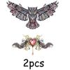 2 piezas Colorido Pecho Tatuaje Grande Búho Amor Pluma Diamante Encaje Impermeable Pegatina de Tatuaje Temporal Pecho Cintura Abdomen Arte Corporal Tatuaje Falso Hombres Mujeres Fiesta Decoración Corporal