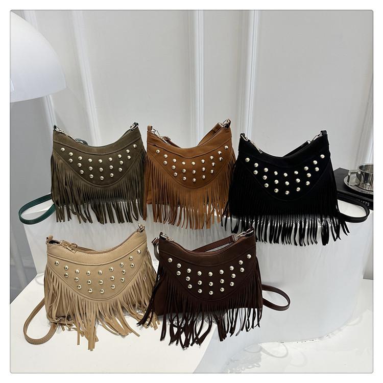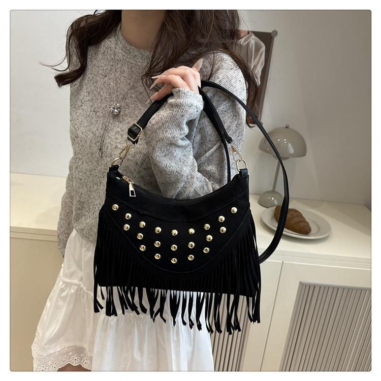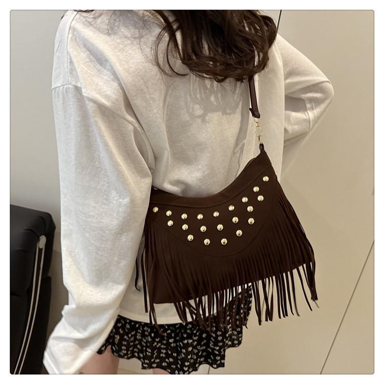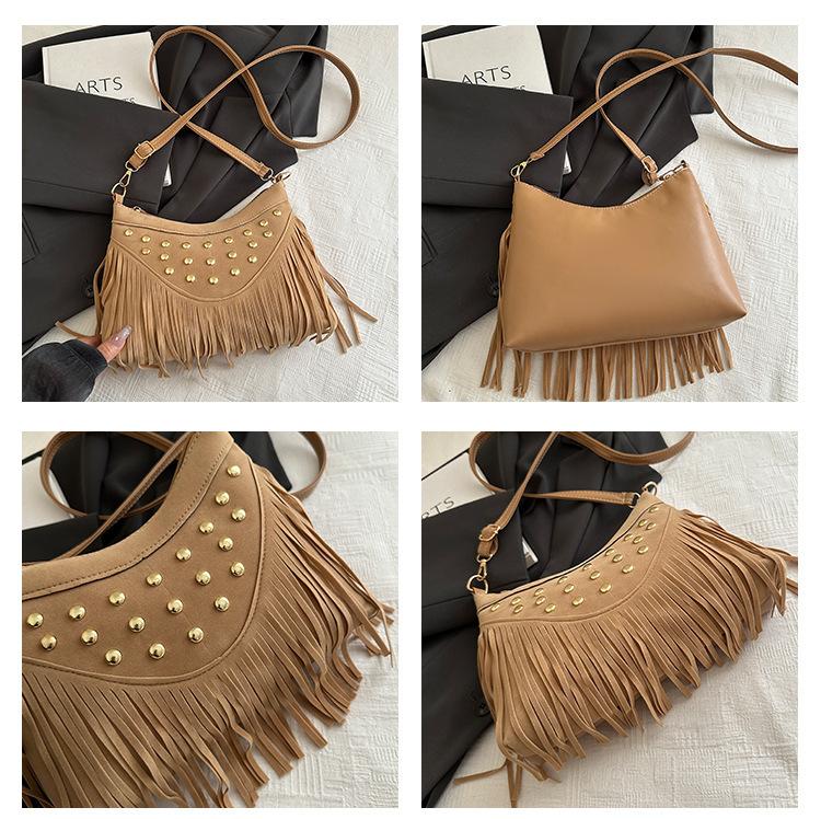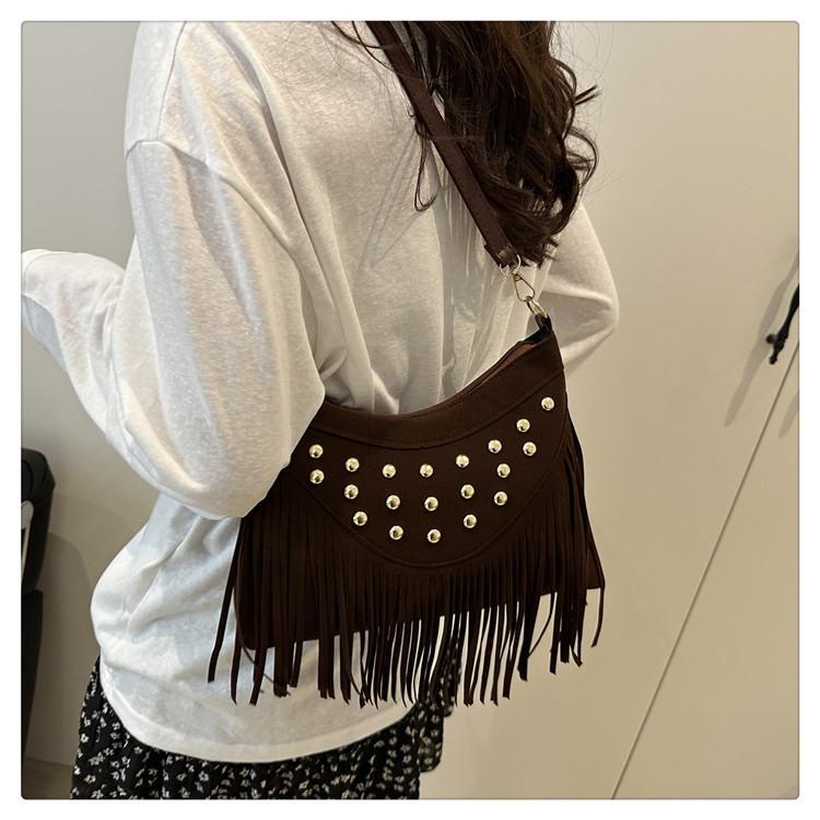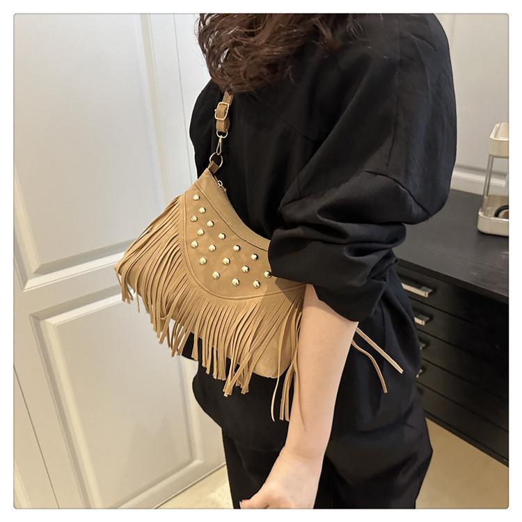 Bolso Sobaco Retro Casual con Borlas Estilo Hong Kong para Mujer 2025 Verano Nueva Tendencia Moda Casual Hombro Cruzado