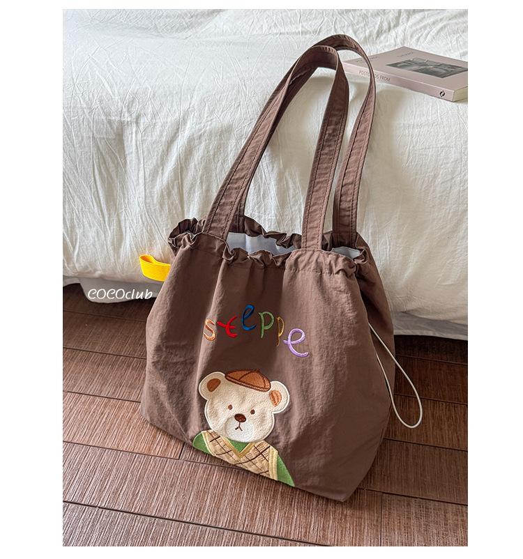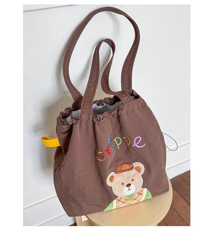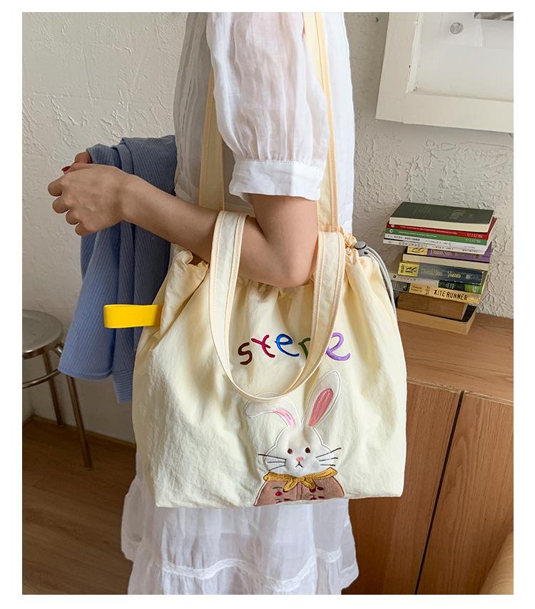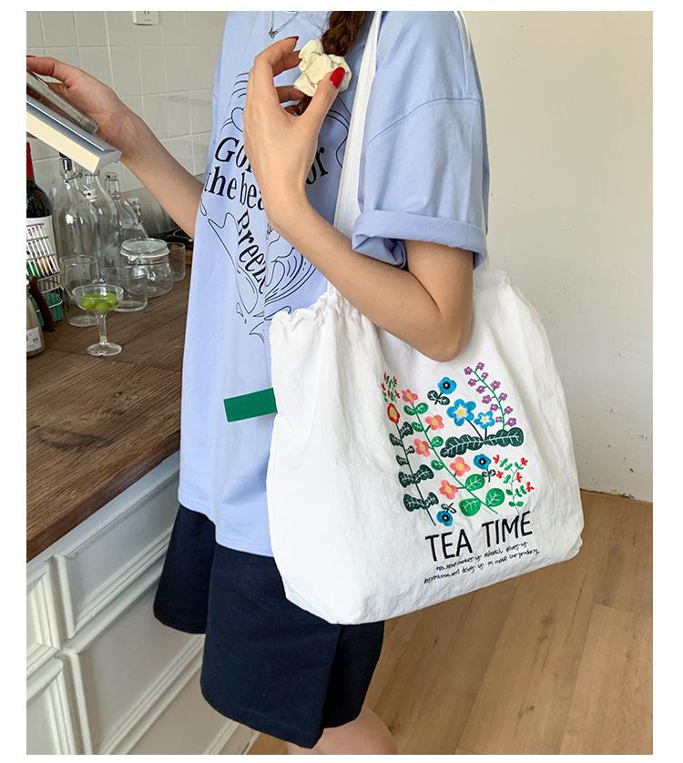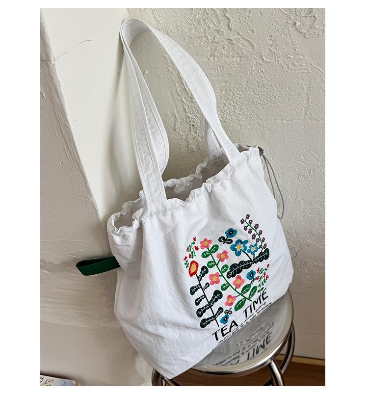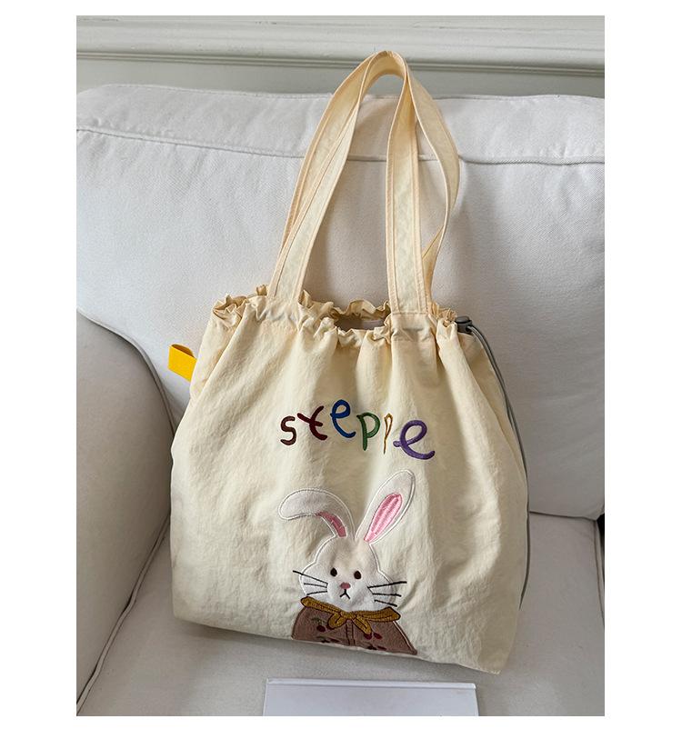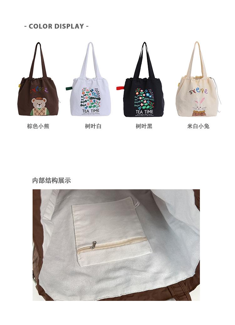 Bolsa de Lona para Mujer de Gran Capacidad 2025 Nuevo Verano Versátil Bolso de Hombro con Cordón Bolsa de Tela Bolsa Tote para Clase para Estudiante Universitario