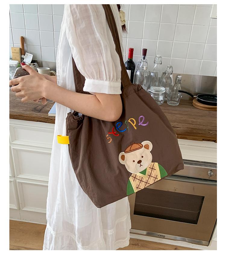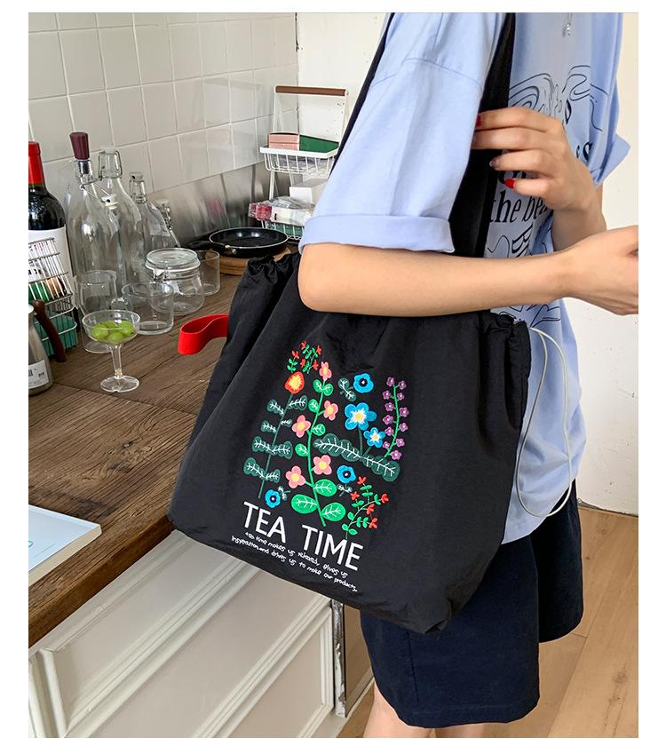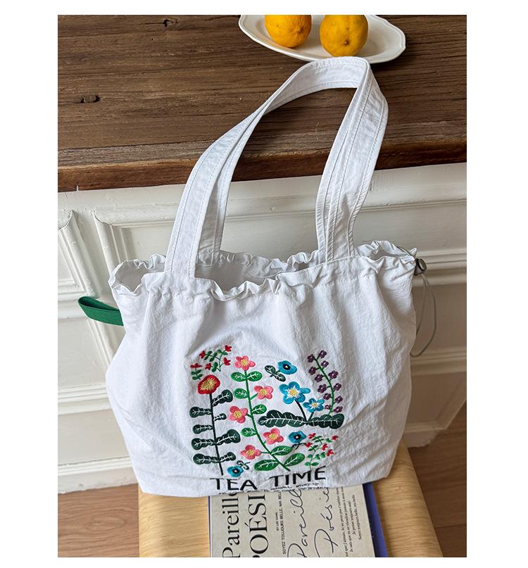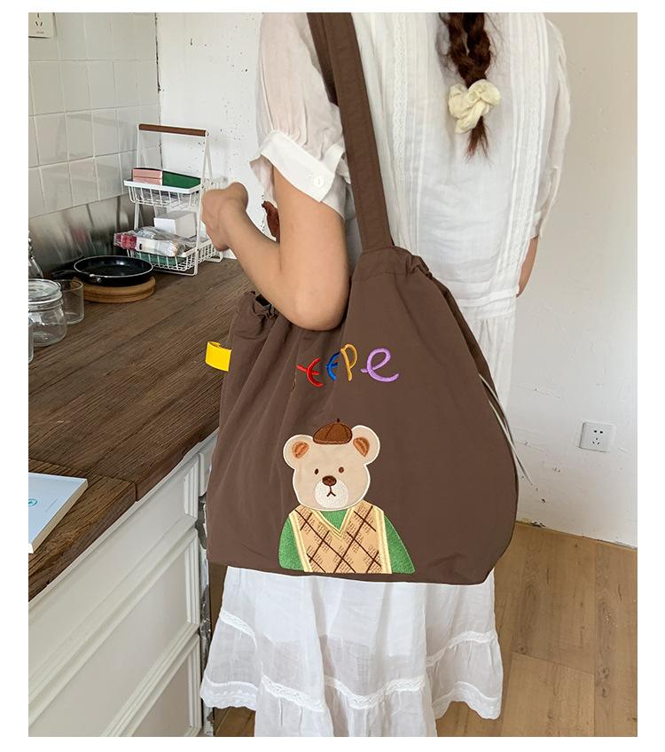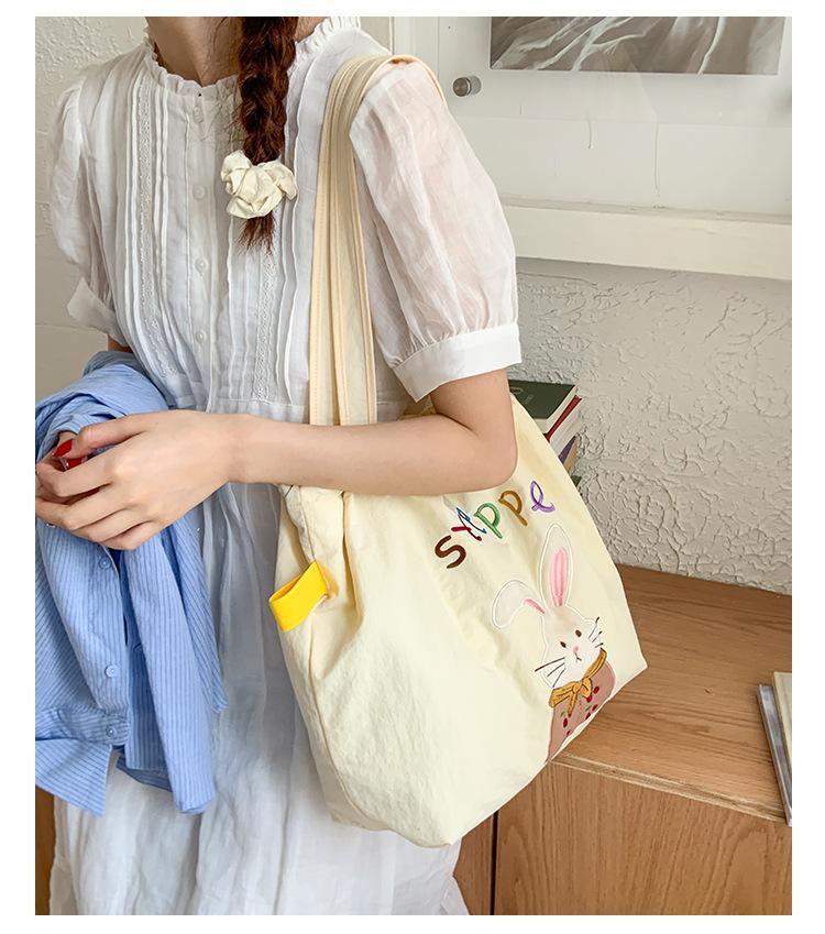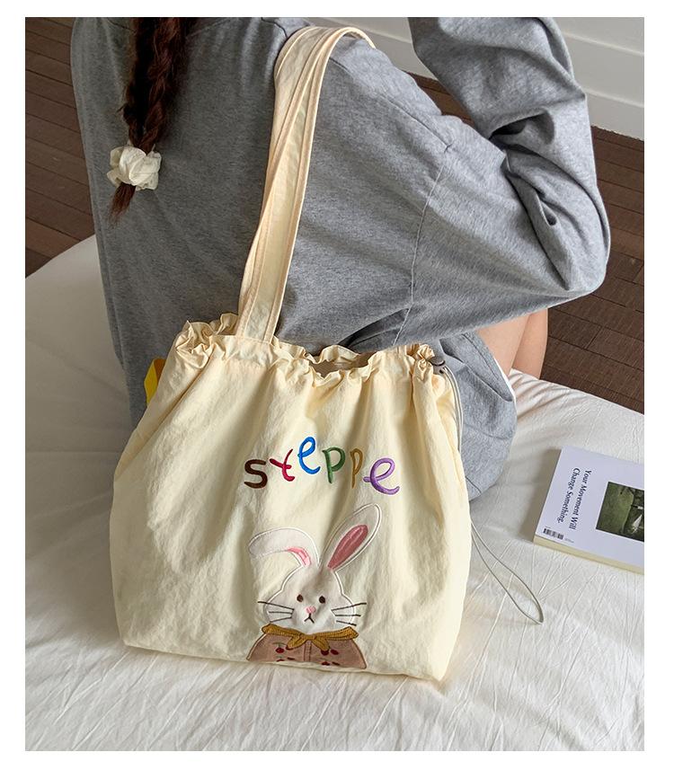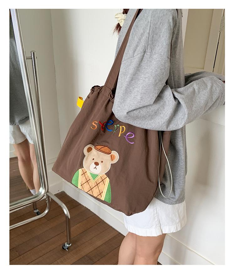 Bolsa de Lona para Mujer de Gran Capacidad 2025 Nuevo Verano Versátil Bolso de Hombro con Cordón Bolsa de Tela Bolsa Tote para Clase para Estudiante Universitario