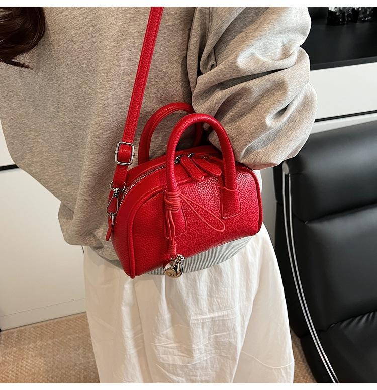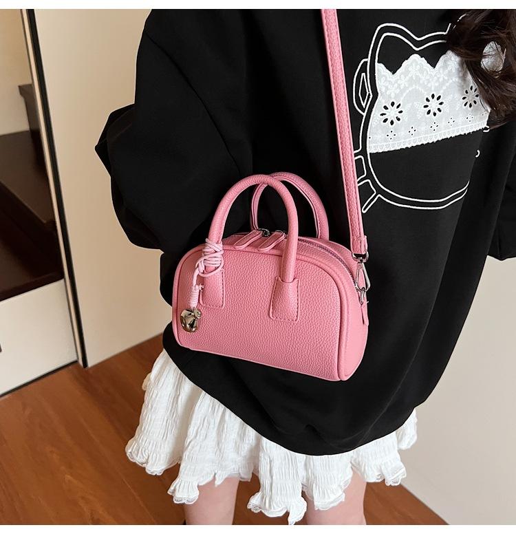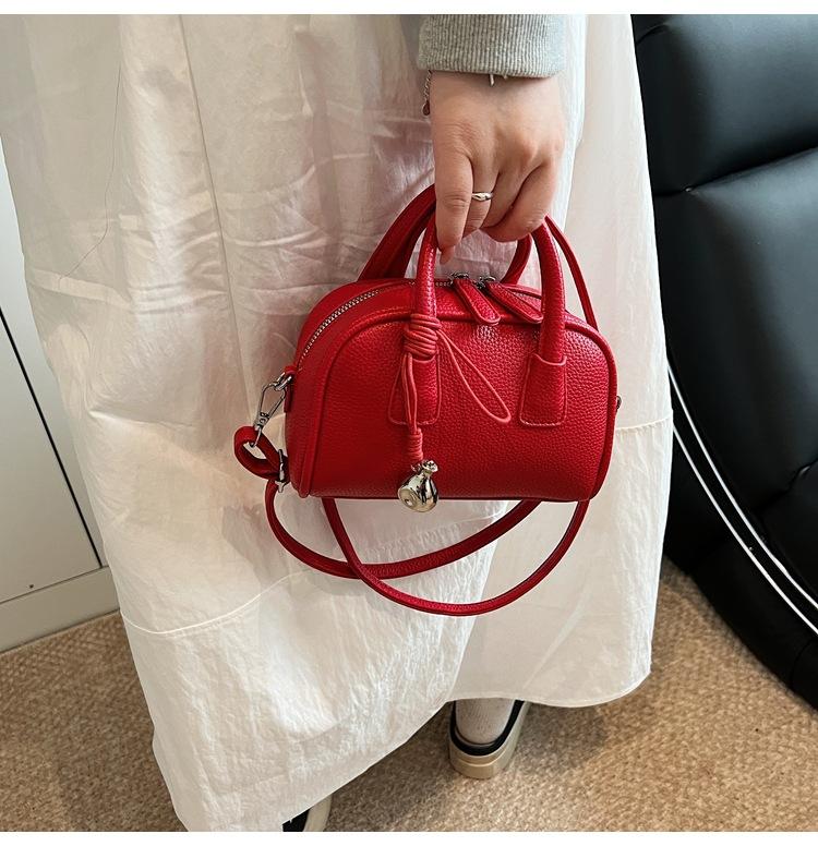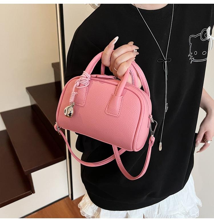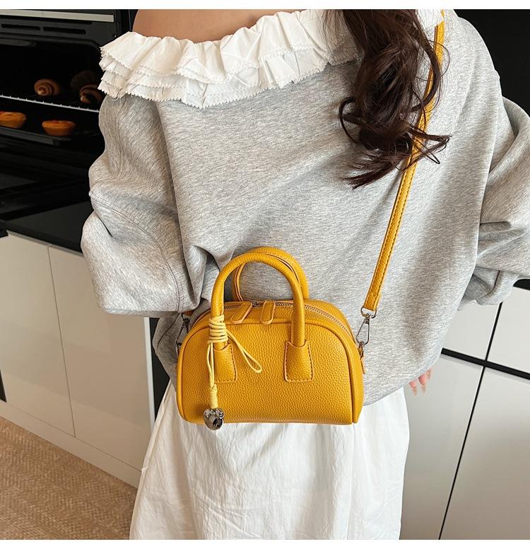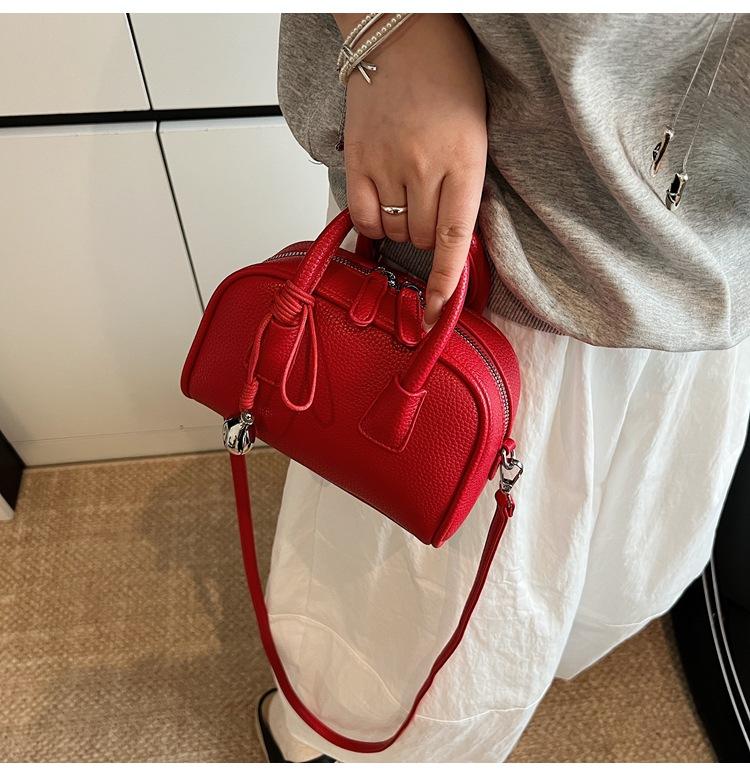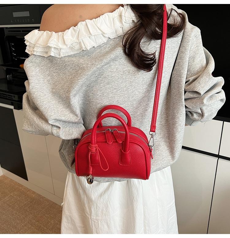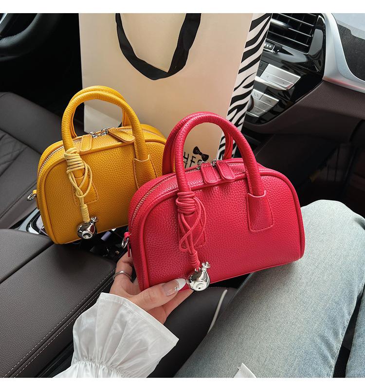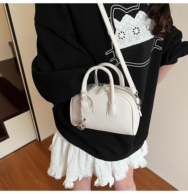 Bolso de Mano Boston 2025 Primavera Nueva Moda de Alta Gama Bolso Bowling Bolso Cuadrado Pequeño de Nicho para Mujer Bolso Bandolera