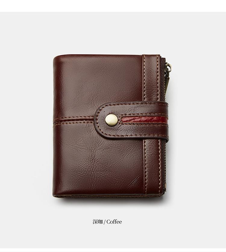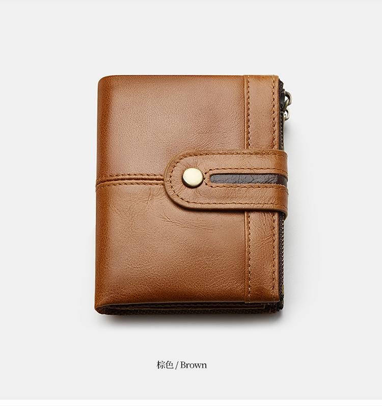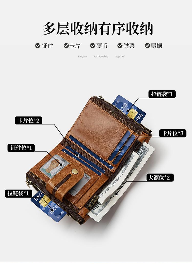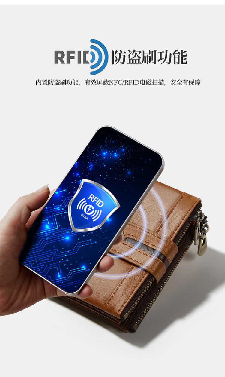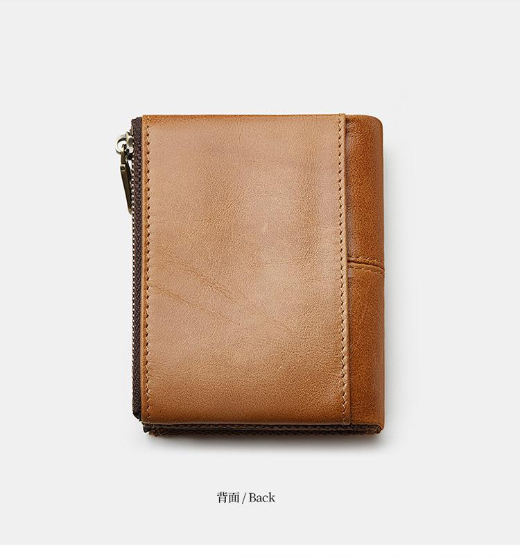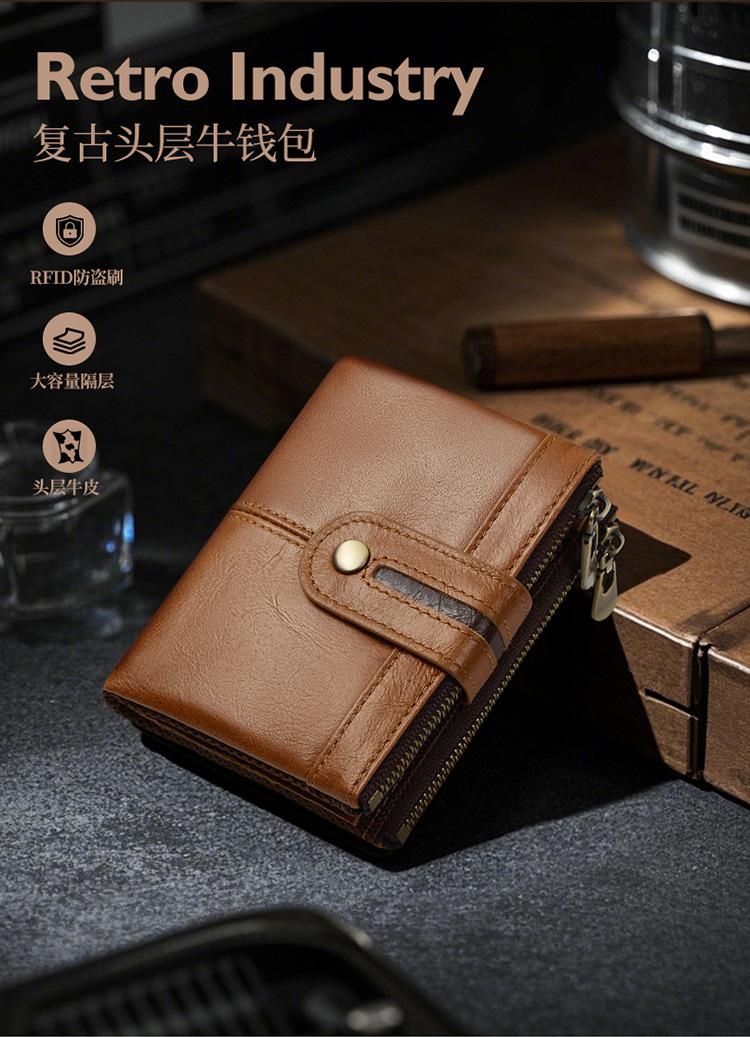 Monedero Corto para Hombre de Cuero Genuino con Cremallera Europeo y Americano Transfronterizo Retro Cuero de Vacuno RFID Antirrobo Billetera Corta