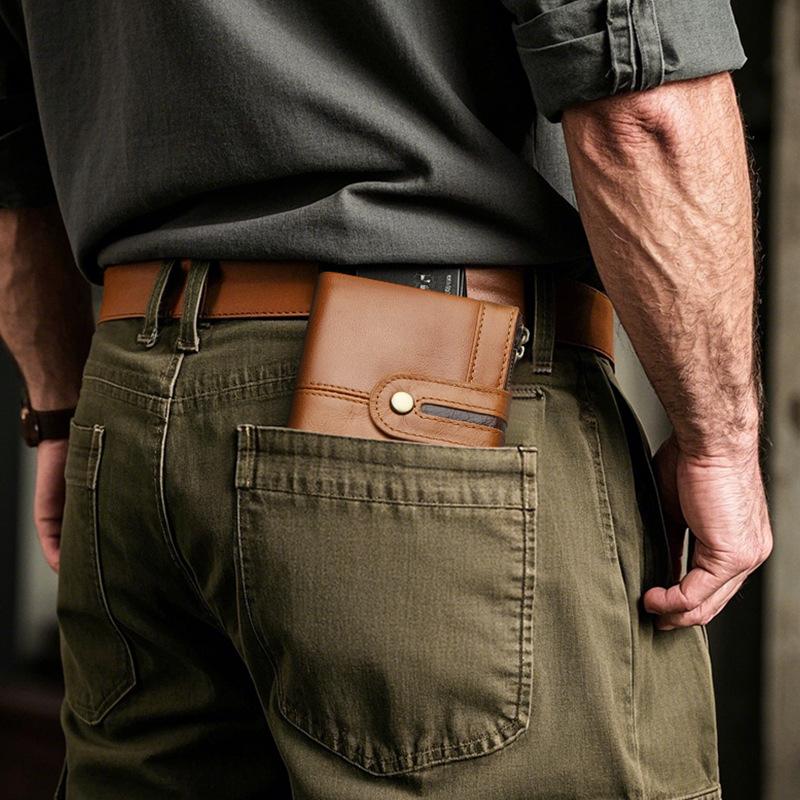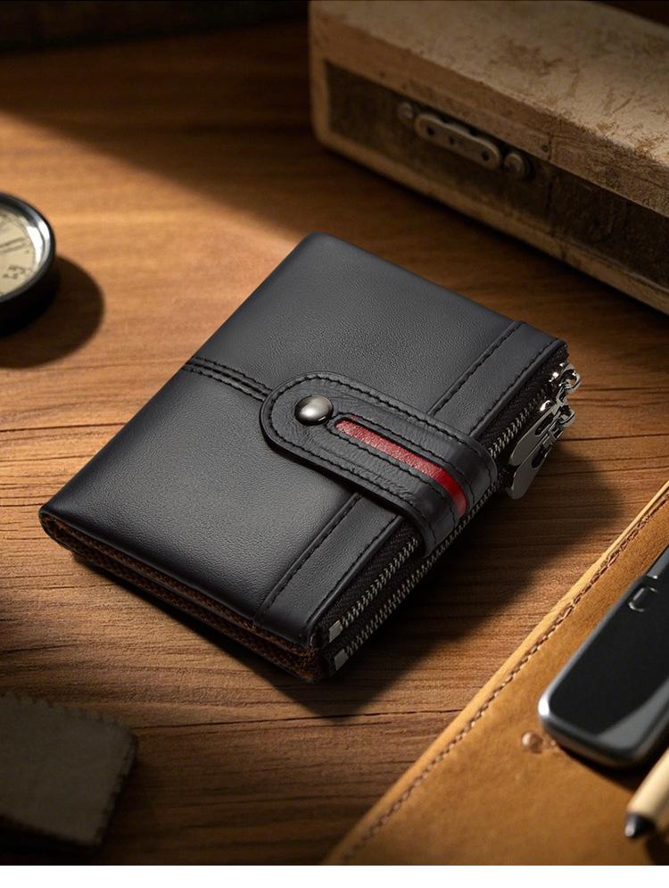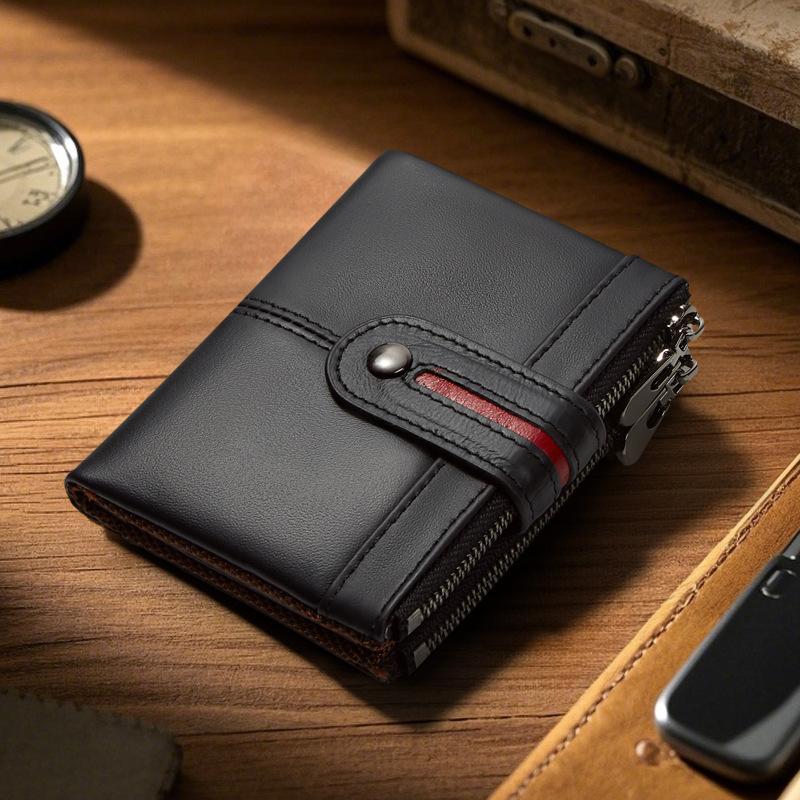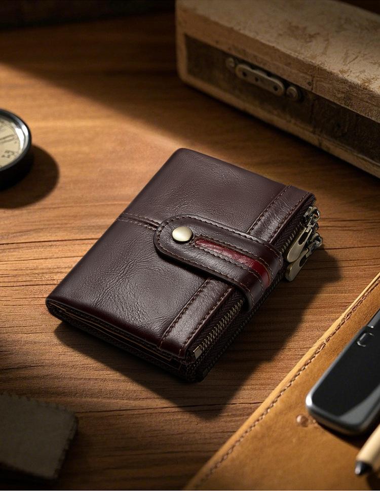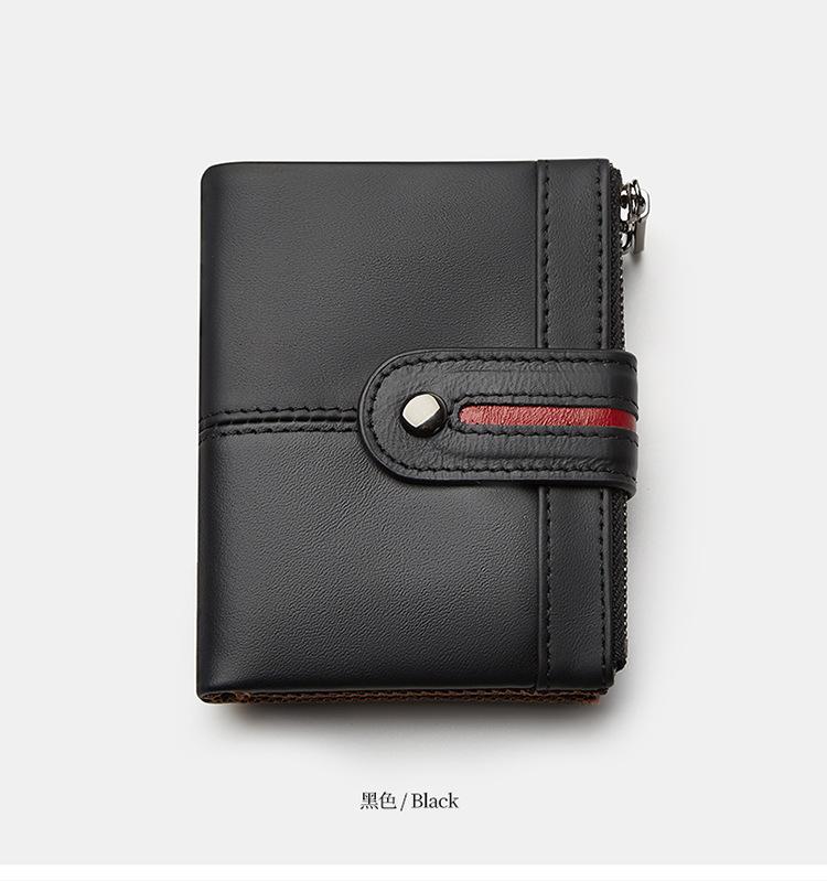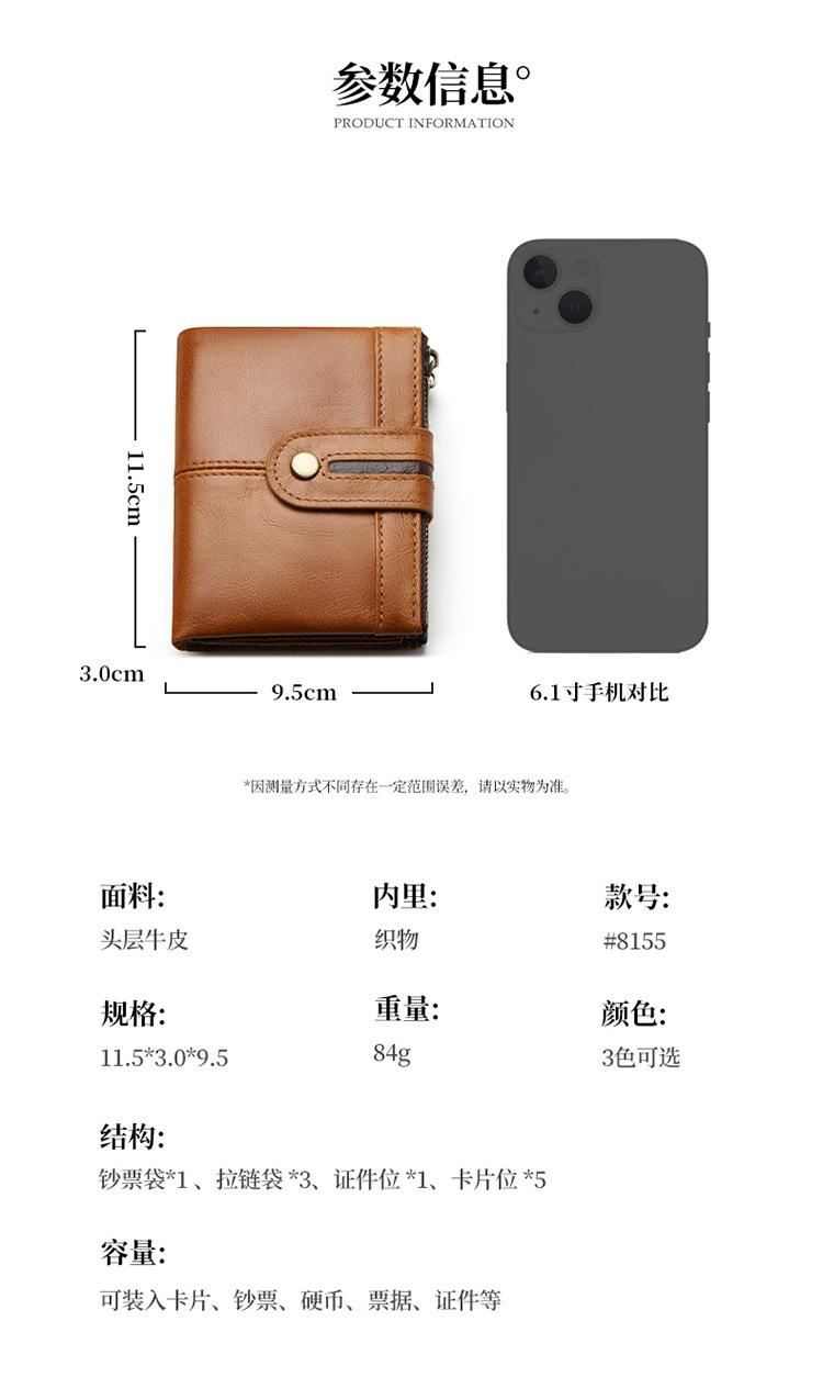 Monedero Corto para Hombre de Cuero Genuino con Cremallera Europeo y Americano Transfronterizo Retro Cuero de Vacuno RFID Antirrobo Billetera Corta
