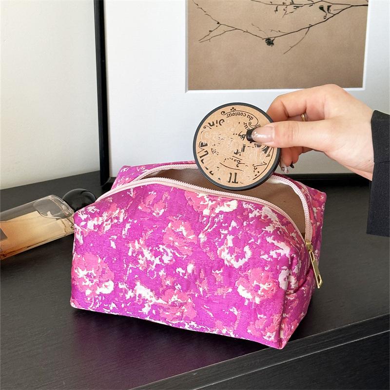 Bolsa de Viaje para Cosméticos con Flores de Aspecto Elegante para Llevar en la Mano, Pequeña Floral, Almacenamiento, Portátil, Gran Capacidad, Bolsa de Lona