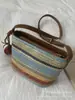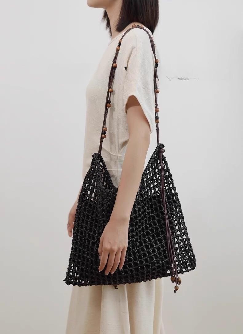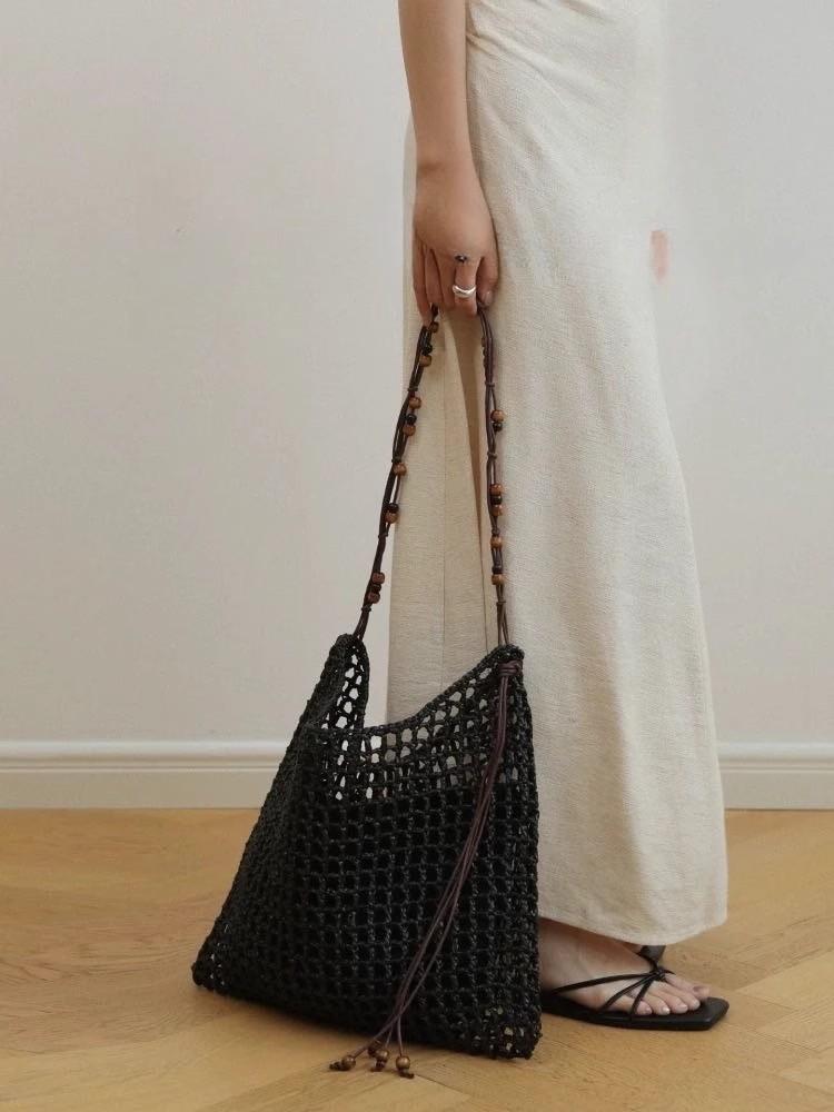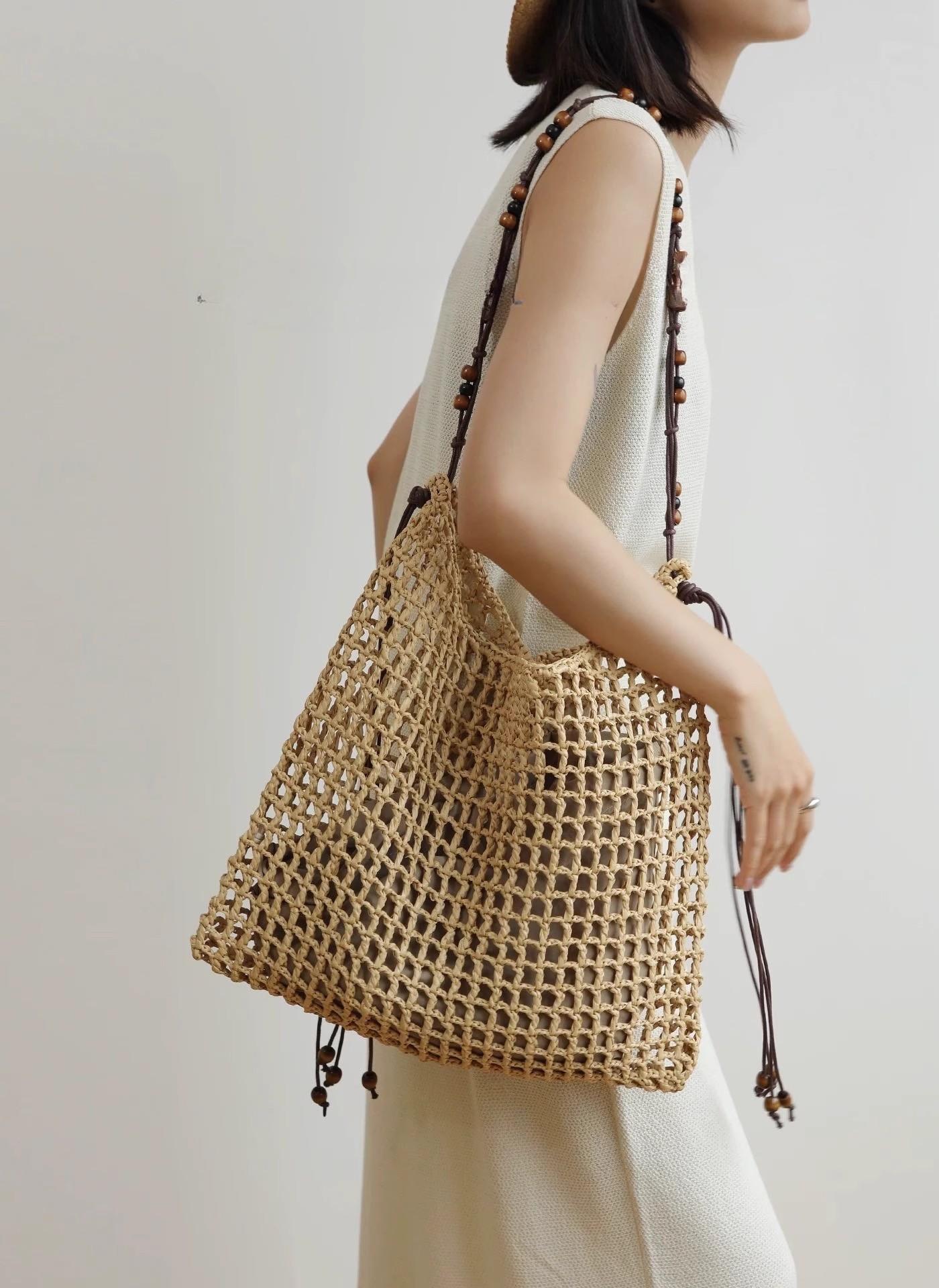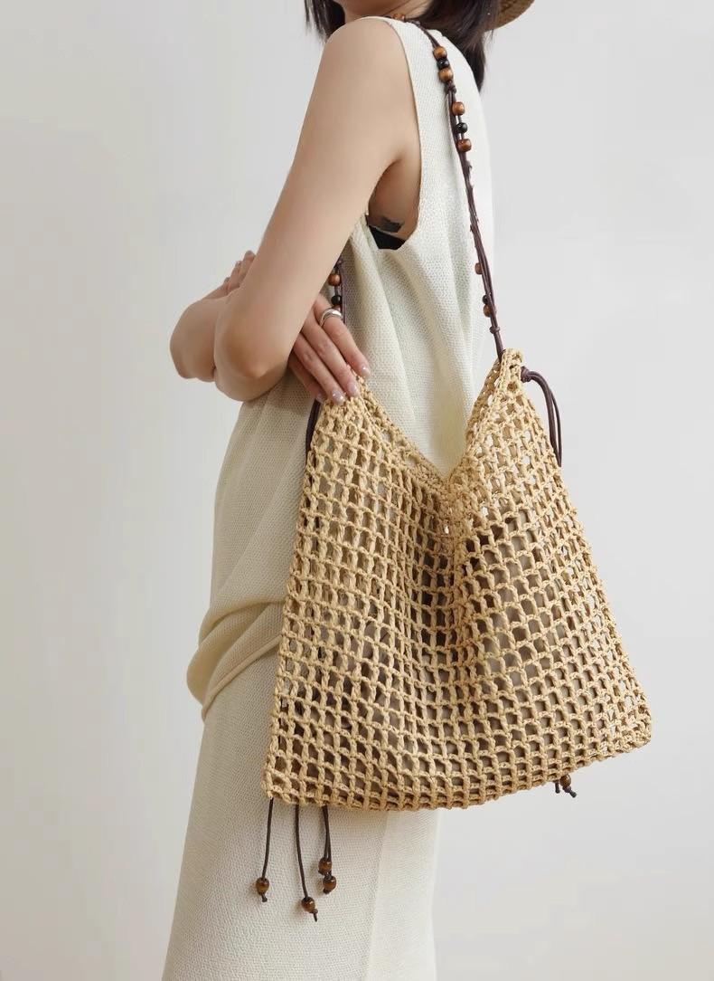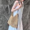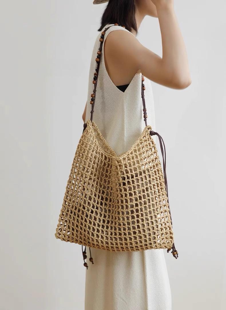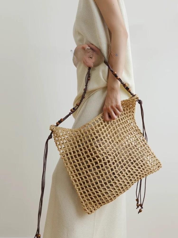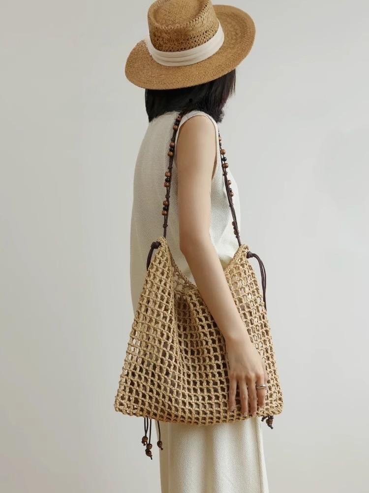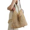 Bolso de Paja Hueco de Verano Estilo Perezoso Bolso Tote de Hombro de Gran Capacidad Bolso Tejido a Mano Simple Bolso de Playa para Vacaciones