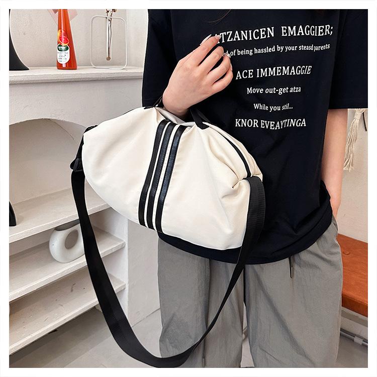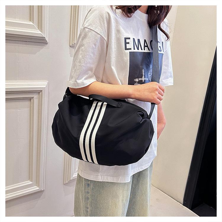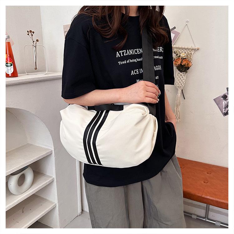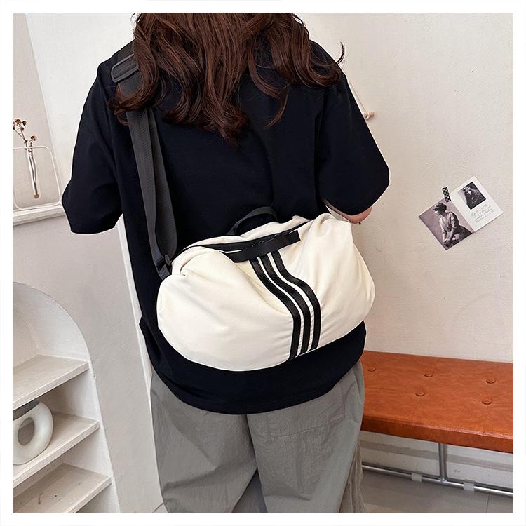 Bolsa de Nailon para Mujer de Gran Capacidad 2024 Nueva Moda Versátil Bolso de Hombro Cruzado a Rayas Casual Viaje Fitness