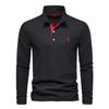 AIOPESON Bordado de Jirafa Camisetas Polo de Hombre Color Sólido Manga Larga Camisetas Polo para Hombre Nuevo Primavera Social Negocios Polos Masculinos
