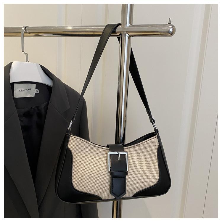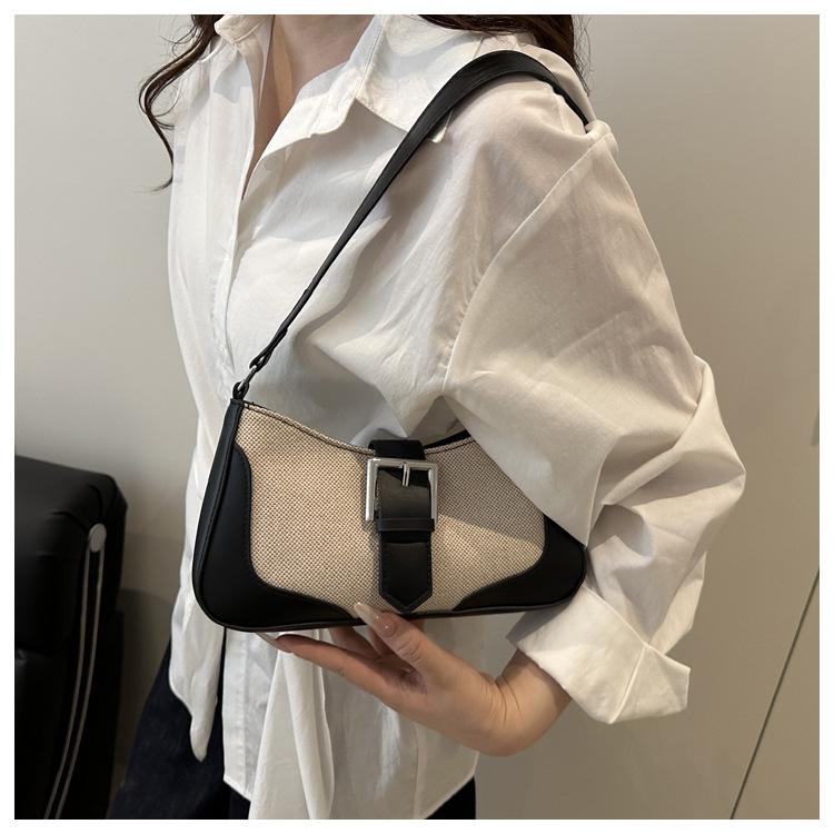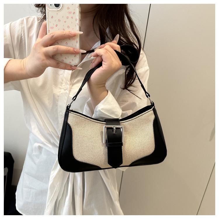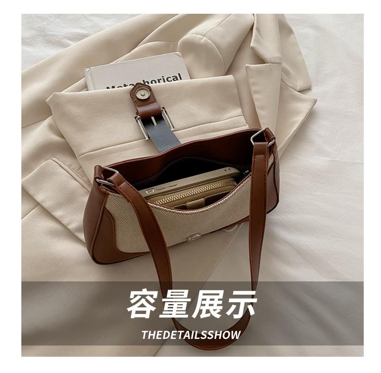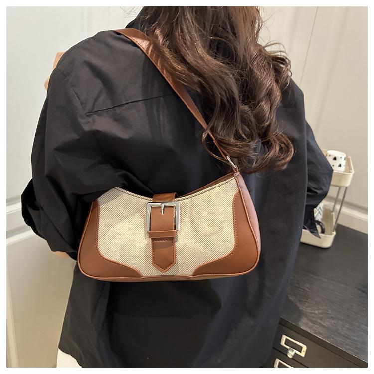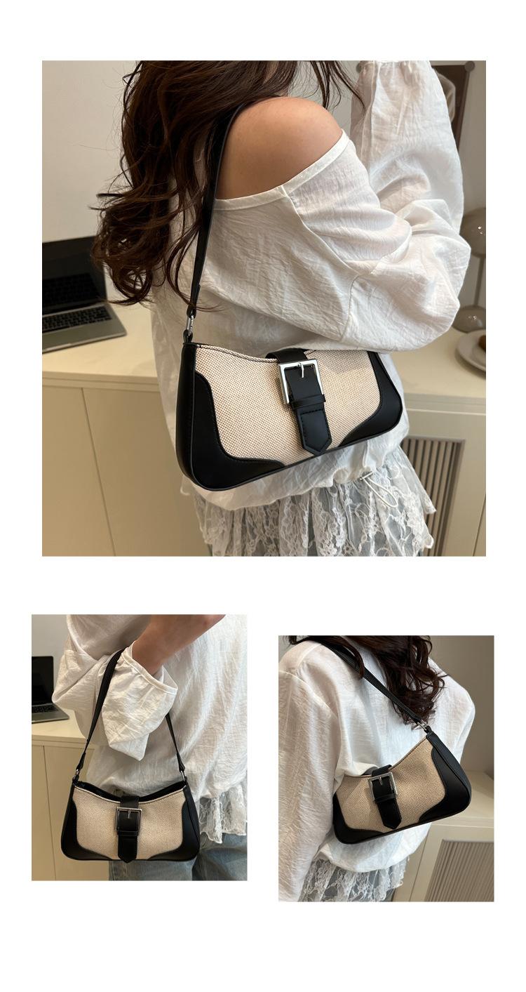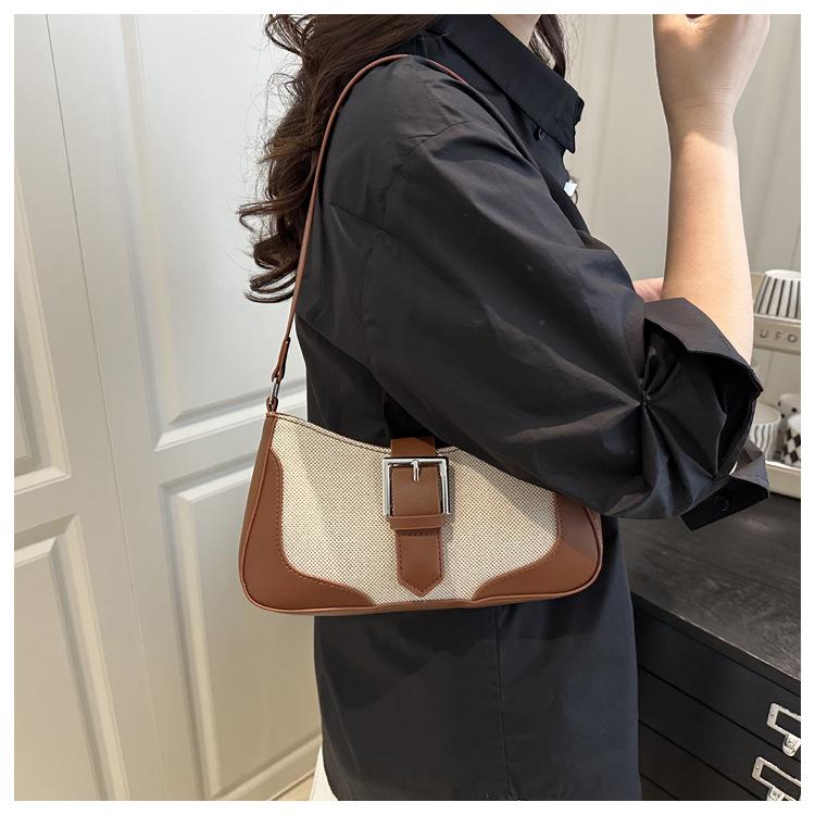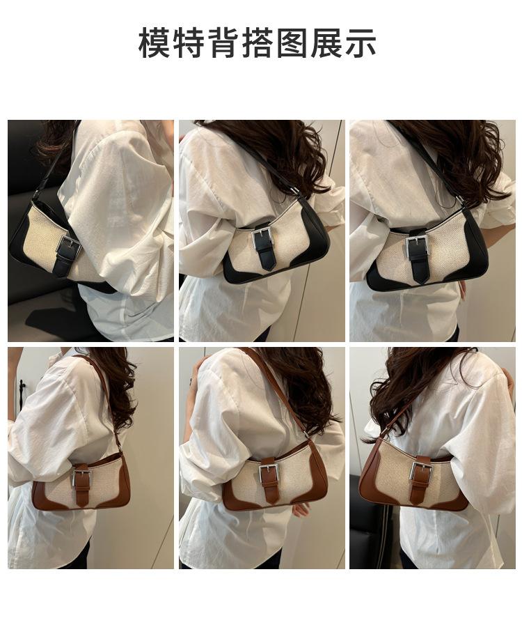 2025 Nueva Moda Trendy Lino Francés Patchwork Simple Gran Capacidad Un Solo Hombro Cruzado Axilar Bolso Cuadrado Pequeño