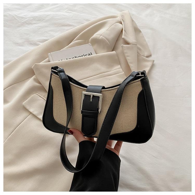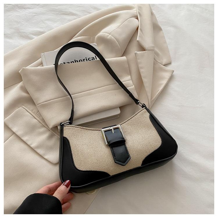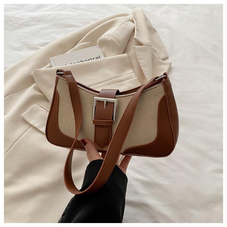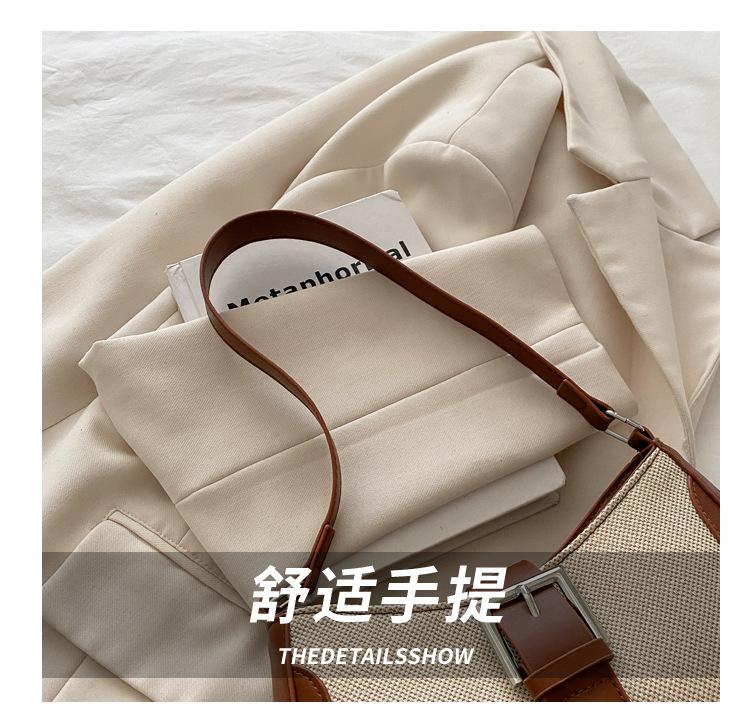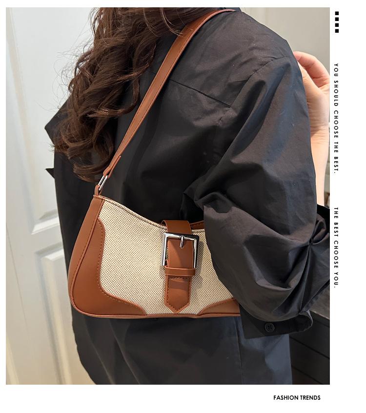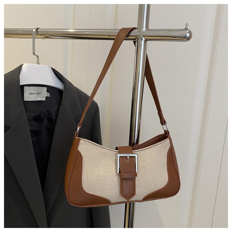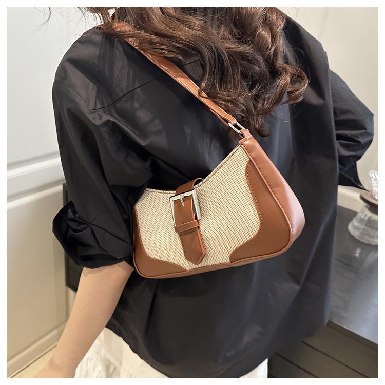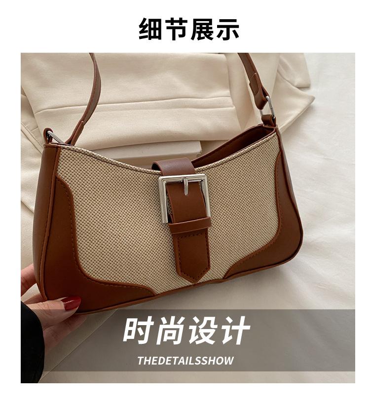2025 Nueva Moda Trendy Lino Francés Patchwork Simple Gran Capacidad Un Solo Hombro Cruzado Axilar Bolso Cuadrado Pequeño