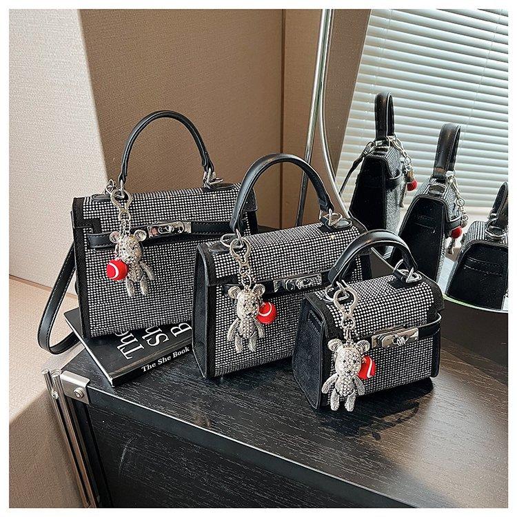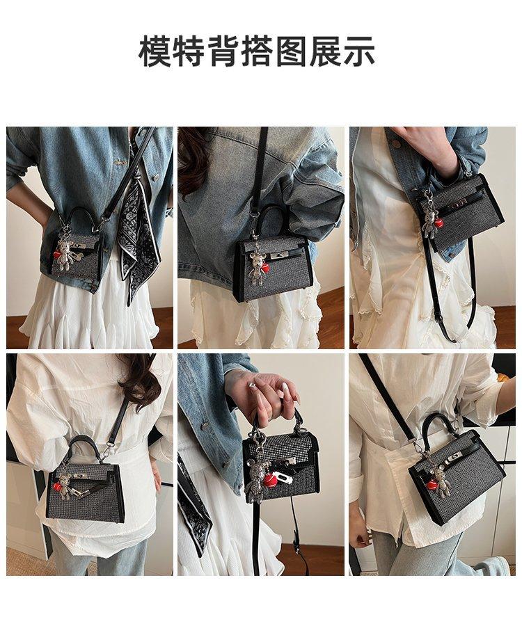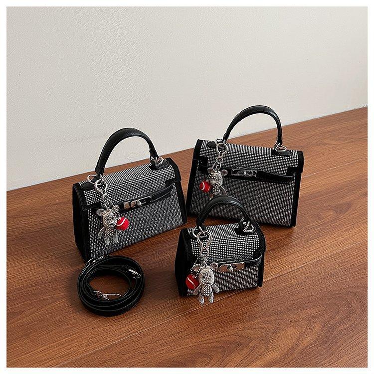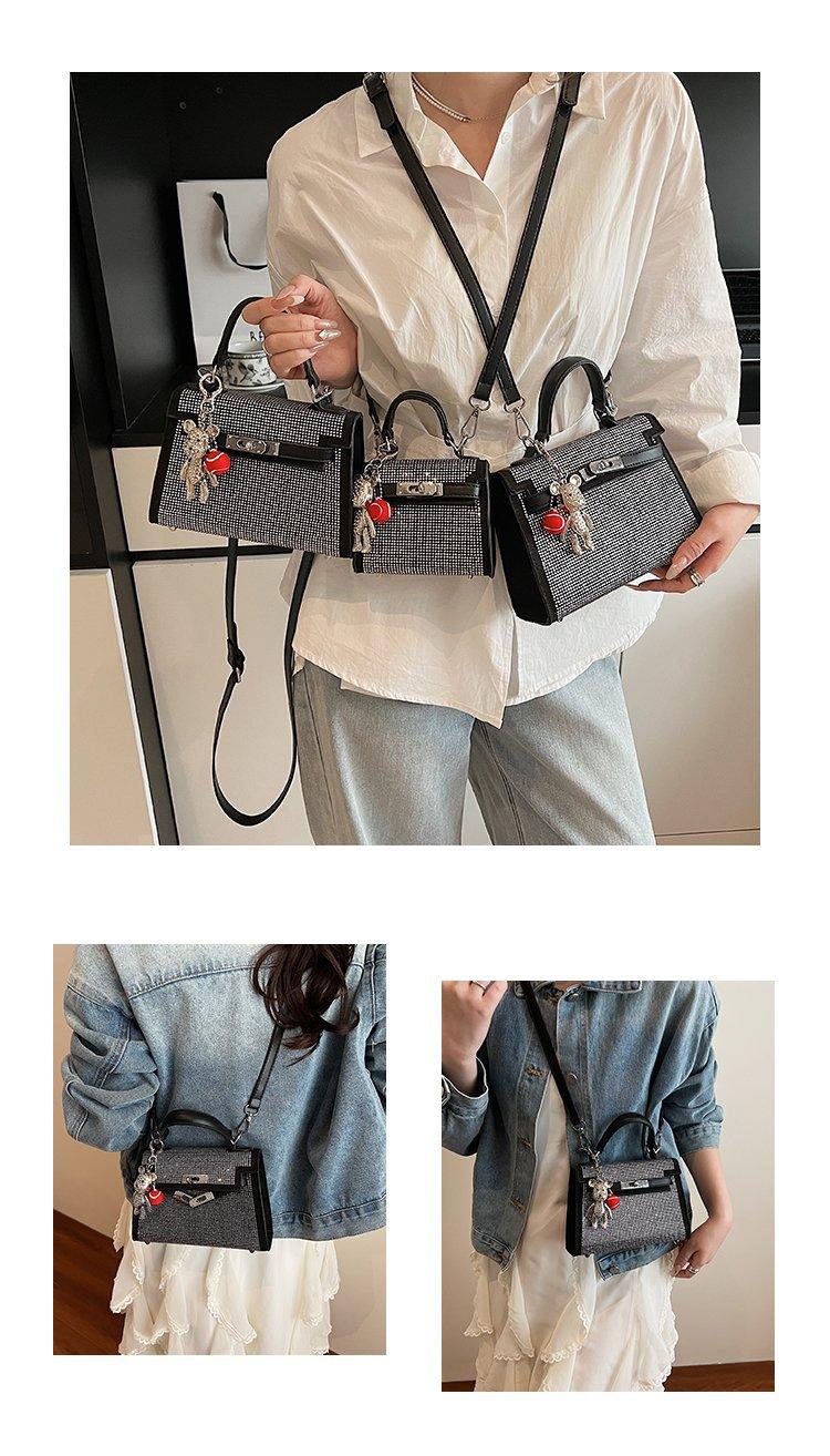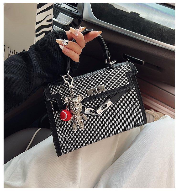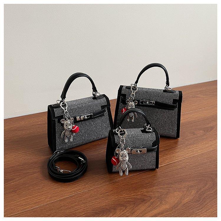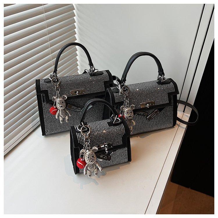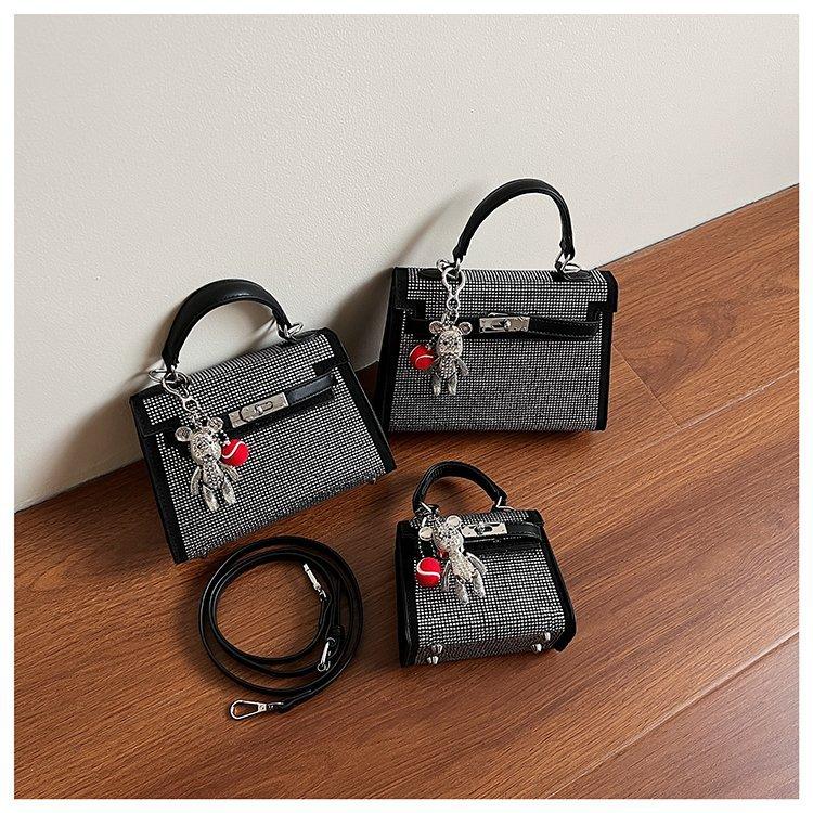 Moda Transfronteriza Bolso de Mujer 2025 Primavera y Verano Nuevo Estilo Bolso Kelly Portátil Bolso de Hombro con Pedrería de Moda Bolso Bandolera Simple
