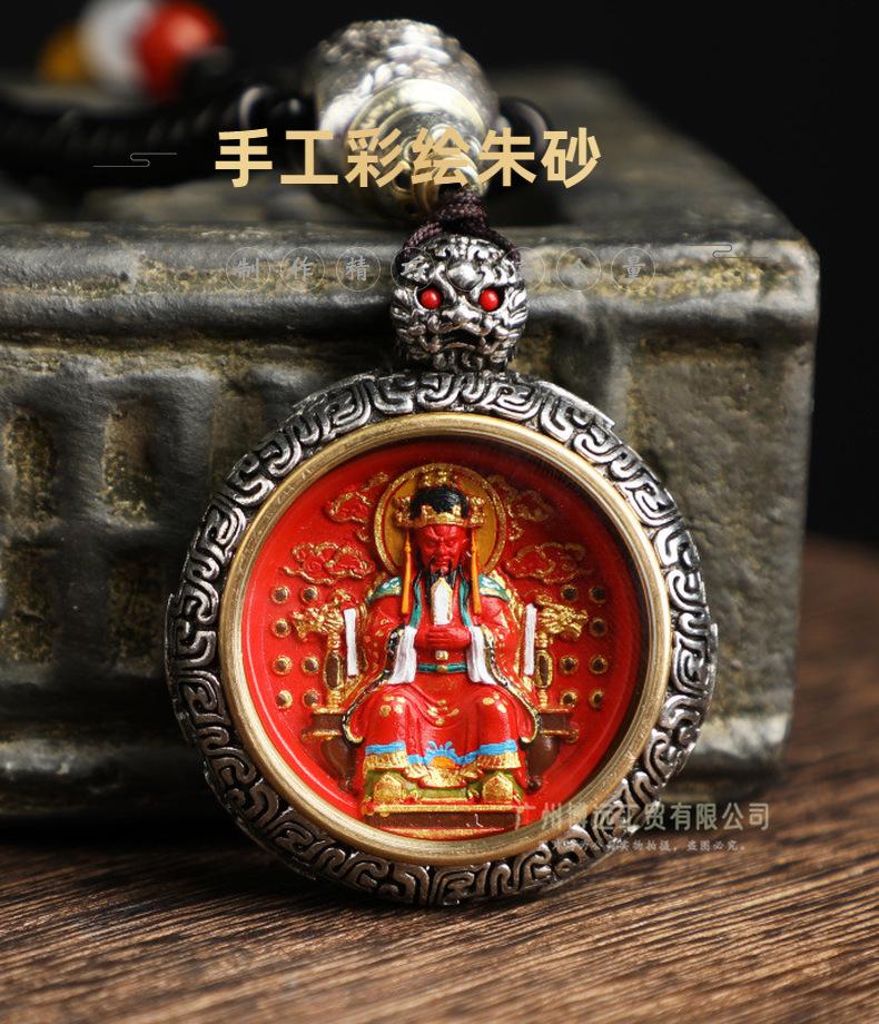 Mineral en bruto cinabrio de alto contenido cinabrio pintado hecho a mano colgante thangka quinto maestro Dios de la Riqueza collar colgante regalo para año de nacimiento
