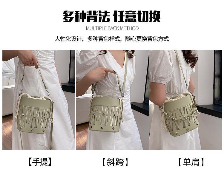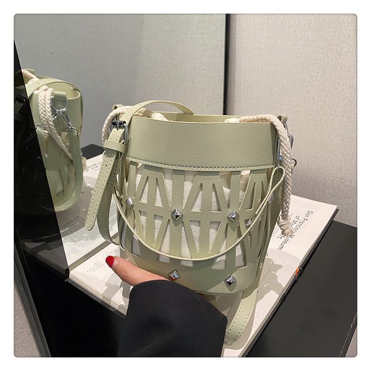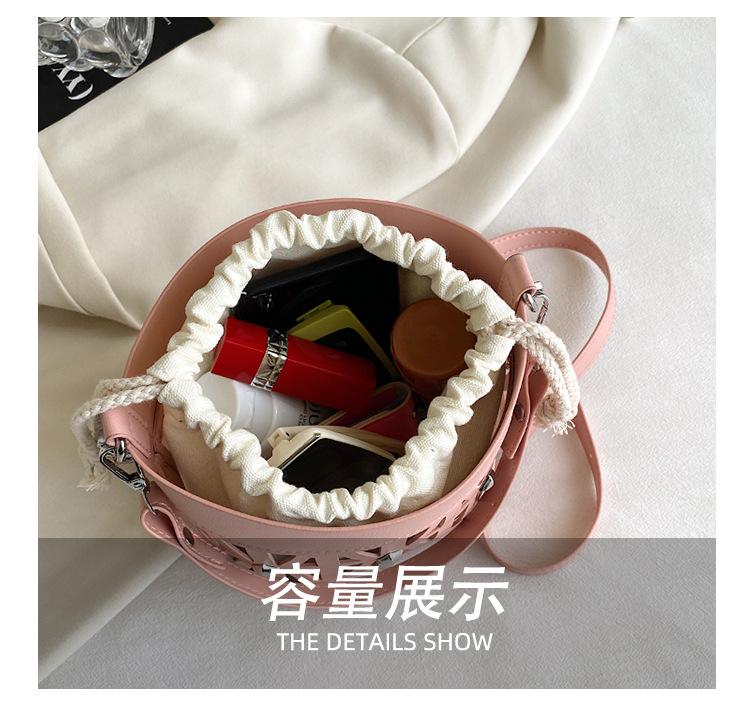 Compra Bolso Bandolera de Moda de Verano Transfronterizo para Mujer 2025 Nuevo Bolso Cubo Calado Portátil Niche de Gran Capacidad con Sensación de Alta Gama al por mayor en Joom.pro