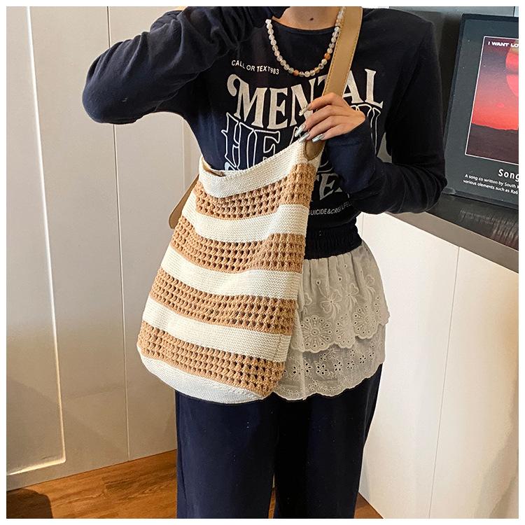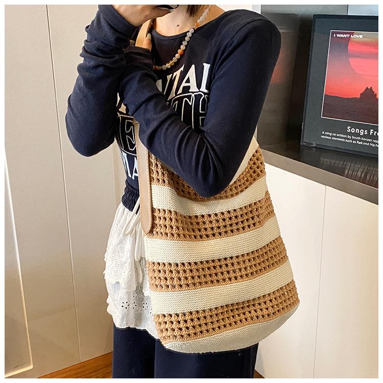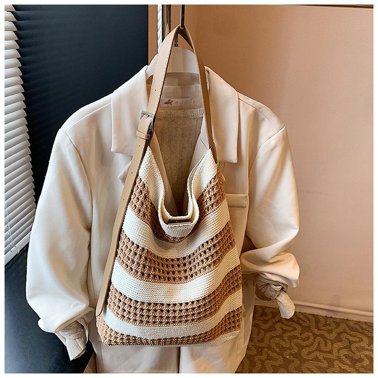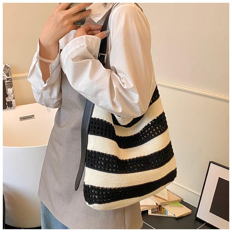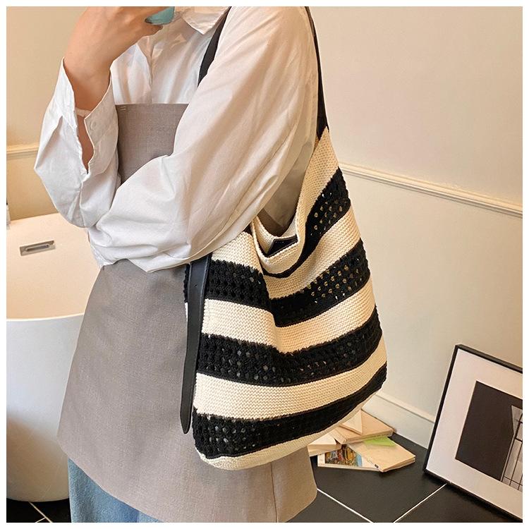 Bolso Tejido de Gran Capacidad para Mujer Diseño Nicho 2025 Casual Simple Elegante Moderno Bandolera de Hombro Tote