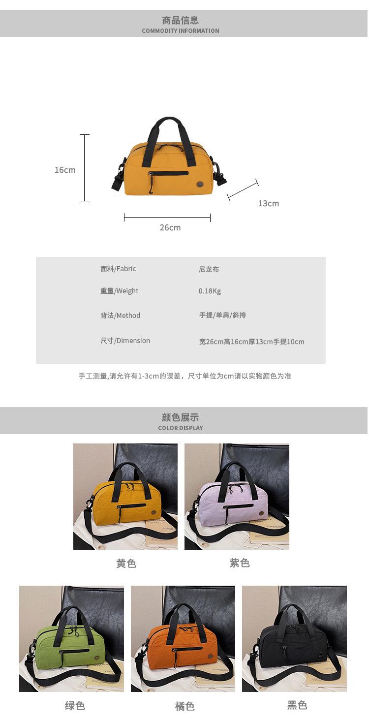 Bolso de Mano Sencillo y Ligero Transfronterizo para Mujer 2025 Nuevo de Alta Gama Color Puro Tela de Nailon Bolso Bandolera de Hombro para Viaje Diario