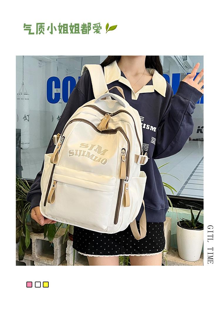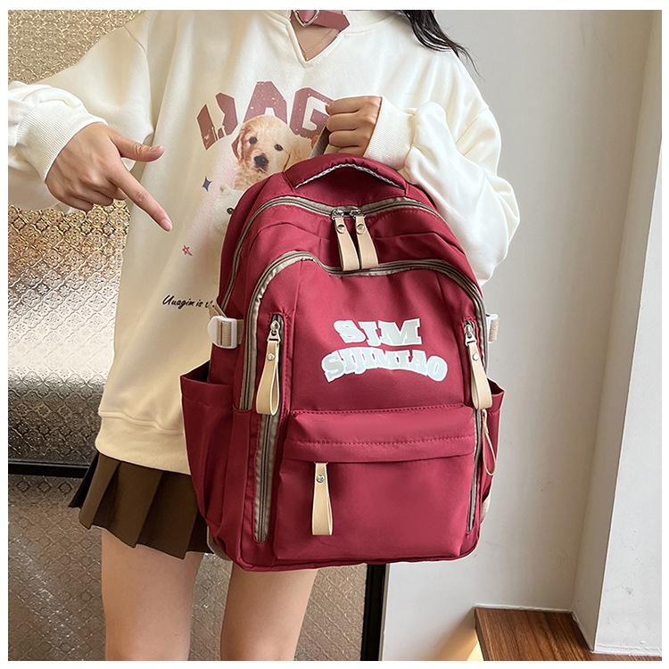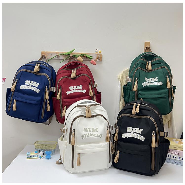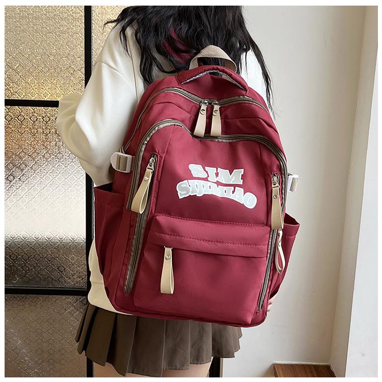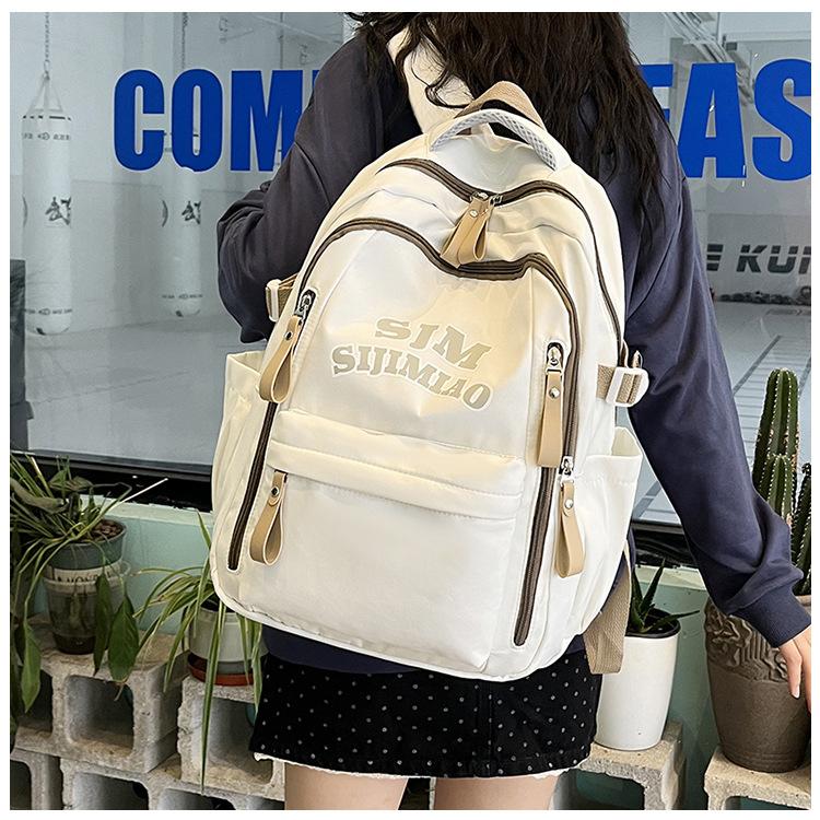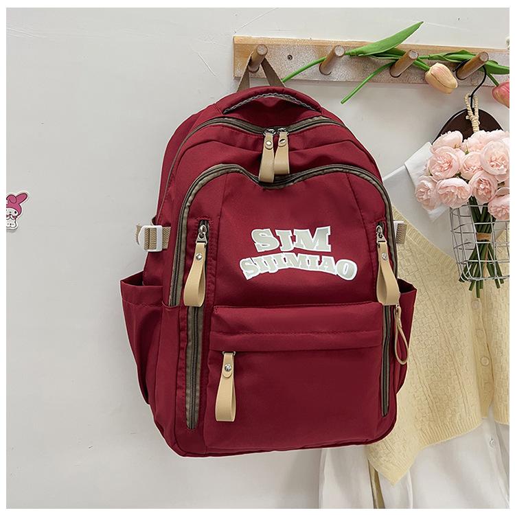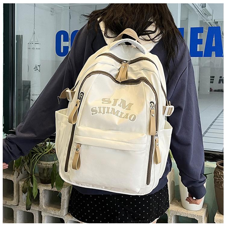 Mochila de Moda de Nailon Ins de Gran Capacidad Unisex para Estudiantes de Secundaria y Preparatoria, Mochila Casual de Color Sólido