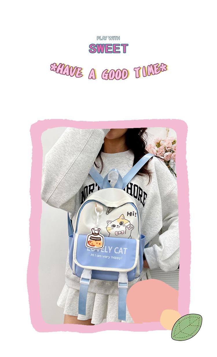 Compra Mochila Linda Estampada con Costuras en Color Contrastante Mochila Pequeña Fresca y Bonita para Niños Mochila Casual para Niña para Escuela Primaria al por mayor en Joom.pro