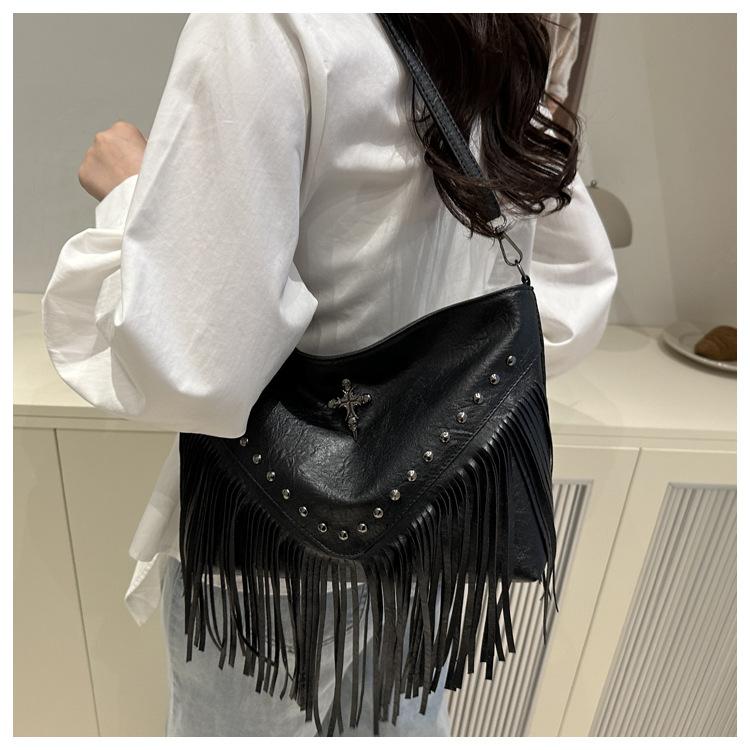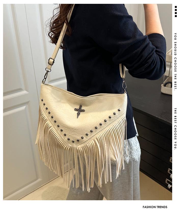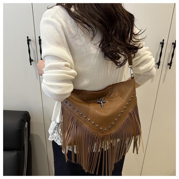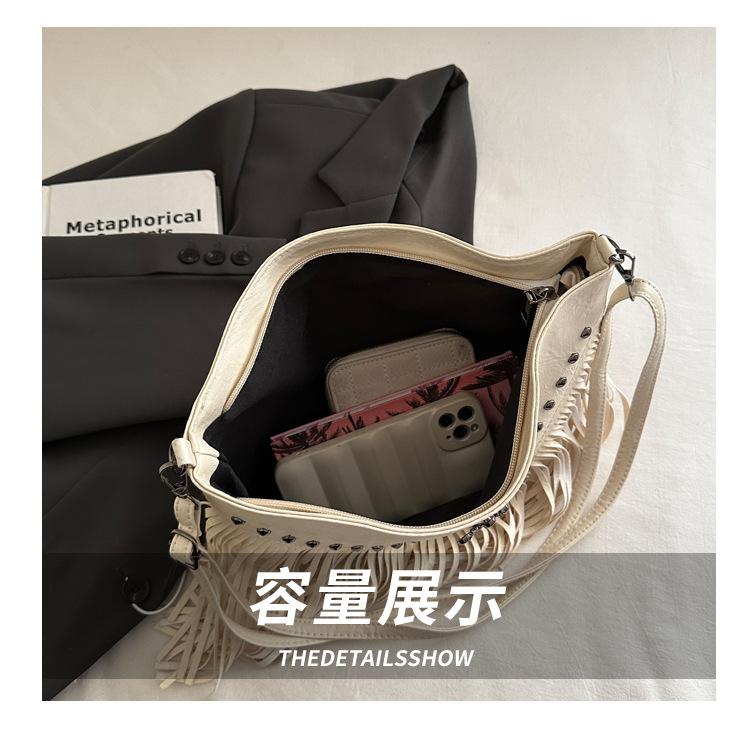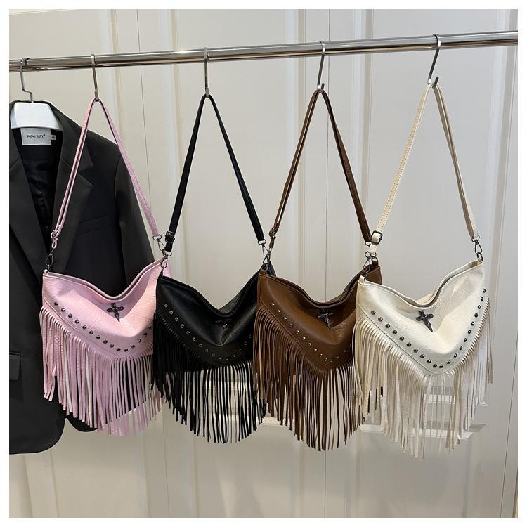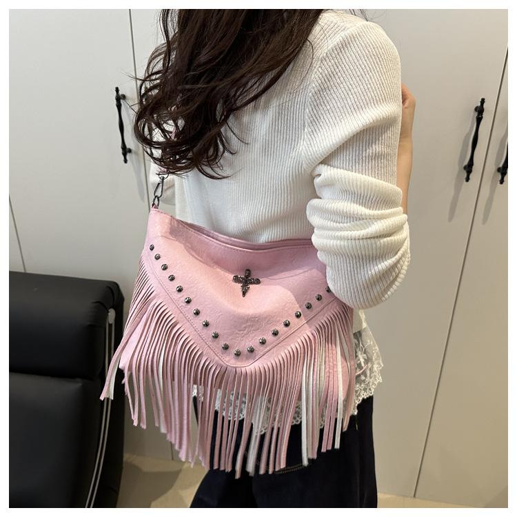 Bolso de Mujer 2025 Nuevo Bolso de Hombro con Estoperoles de Moda Coreana Ins Borla Trendy Versátil Bandolera Sobaco