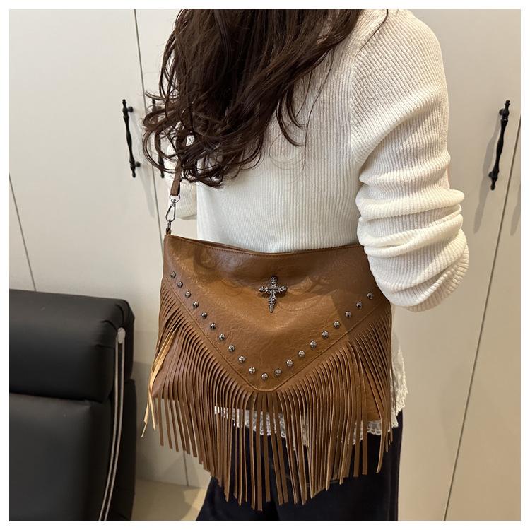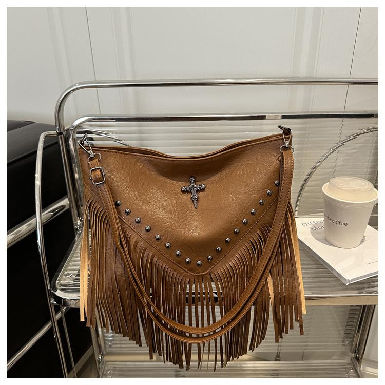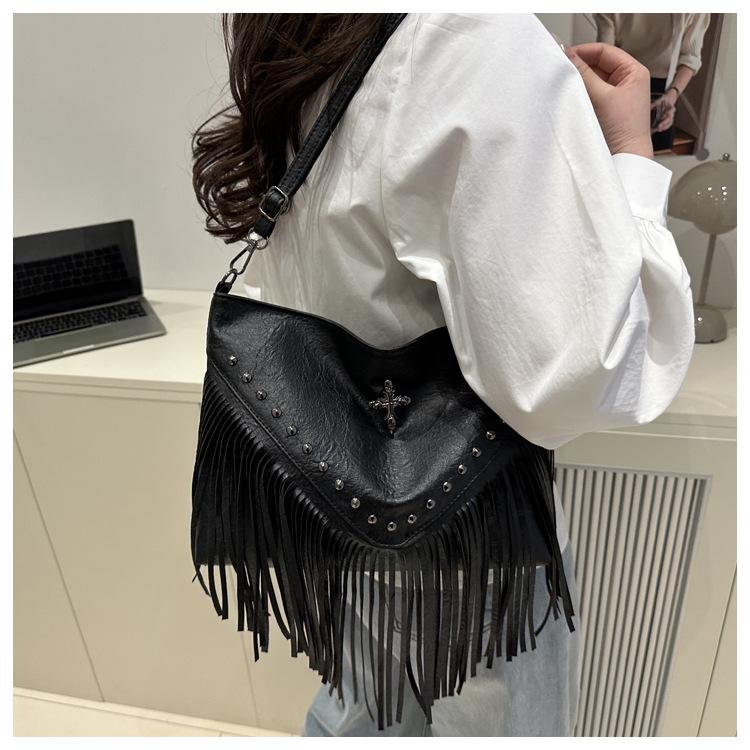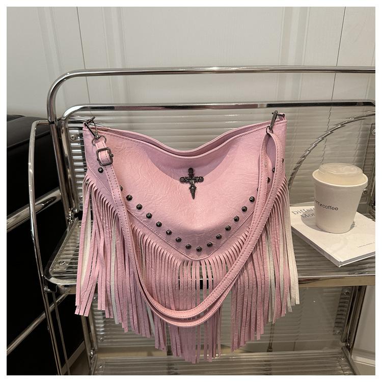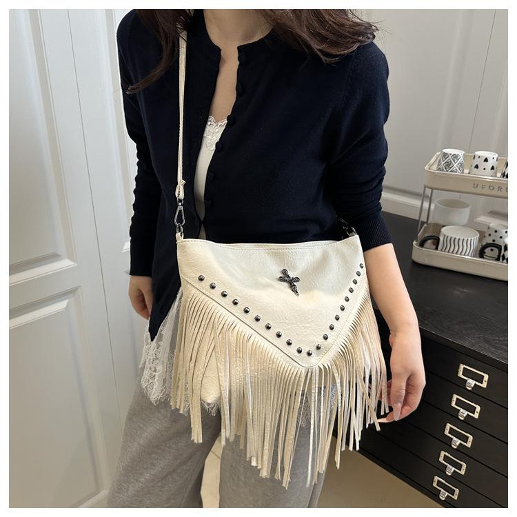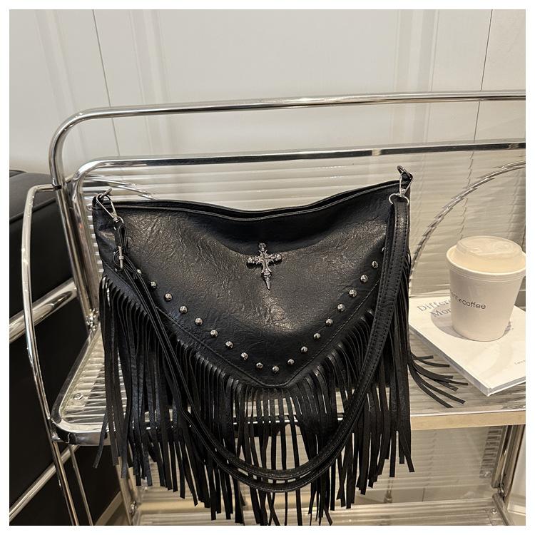 Bolso de Mujer 2025 Nuevo Bolso de Hombro con Estoperoles de Moda Coreana Ins Borla Trendy Versátil Bandolera Sobaco