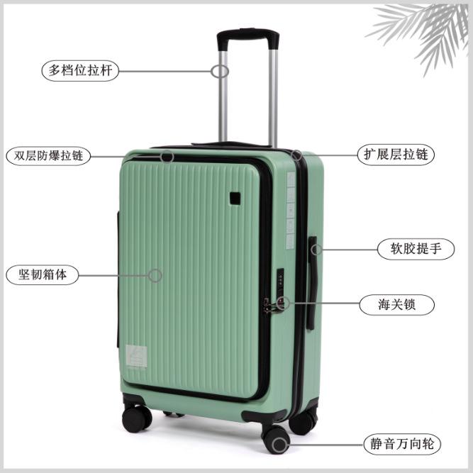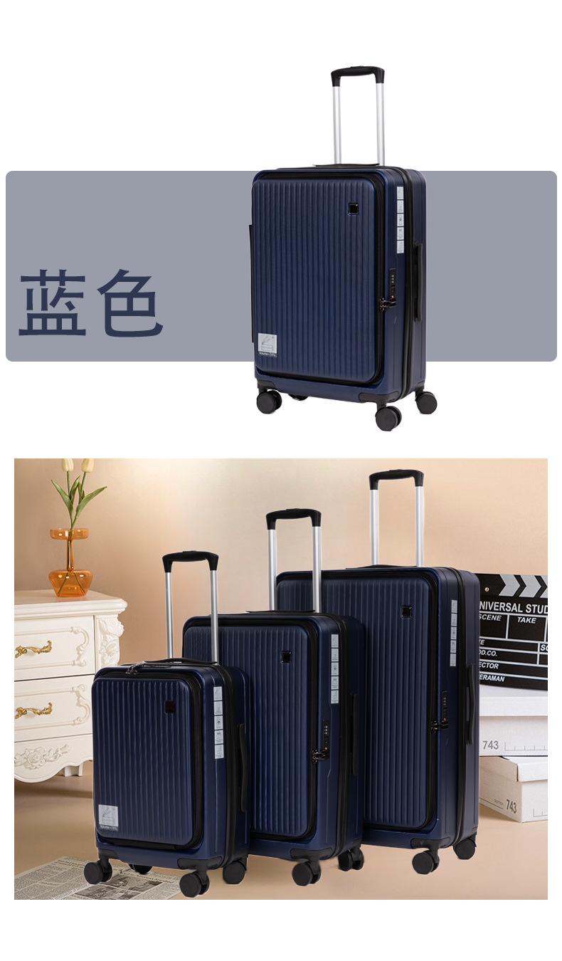 Maleta Azul Personalizada de Apertura Frontal 2024 Nueva Maleta Multifuncional para Abordar Rueda Universal Maleta Silenciosa
