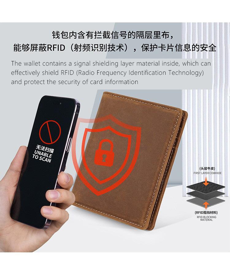 Cartera Europea y Americana Retro de Cuero Crazy Horse para Hombre Rfid Ruso Más Vendido Primera Capa Cuero Vacuno Corta Cuero Genuino Venta al por Mayor