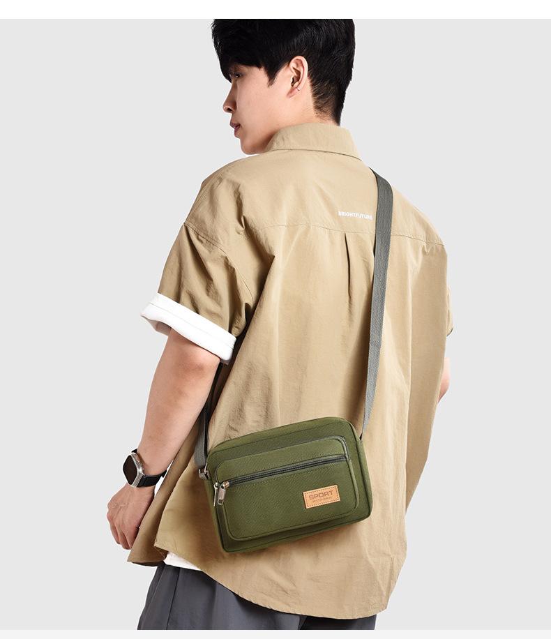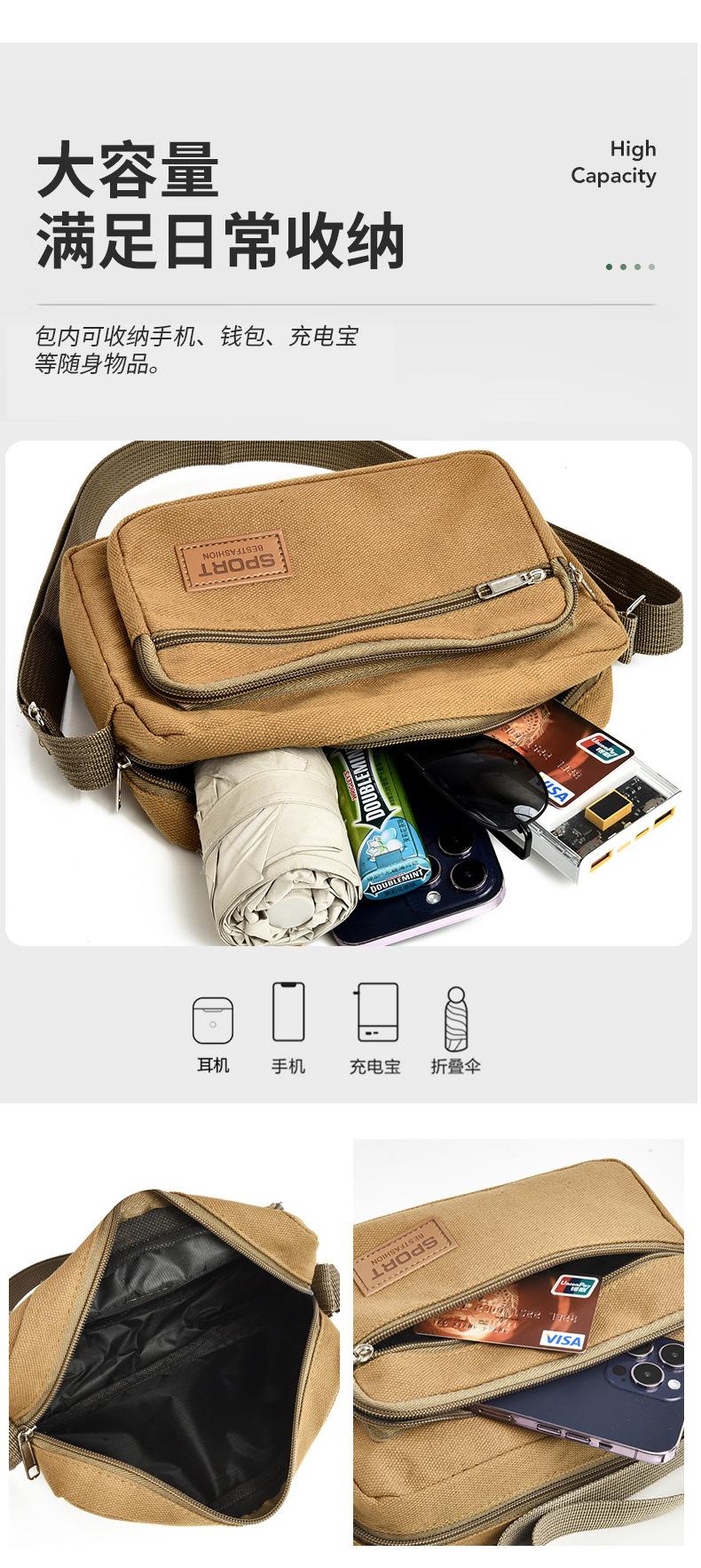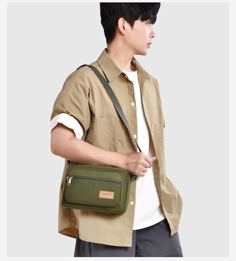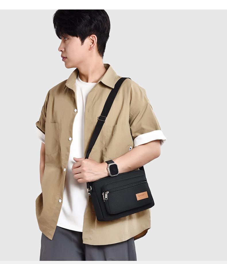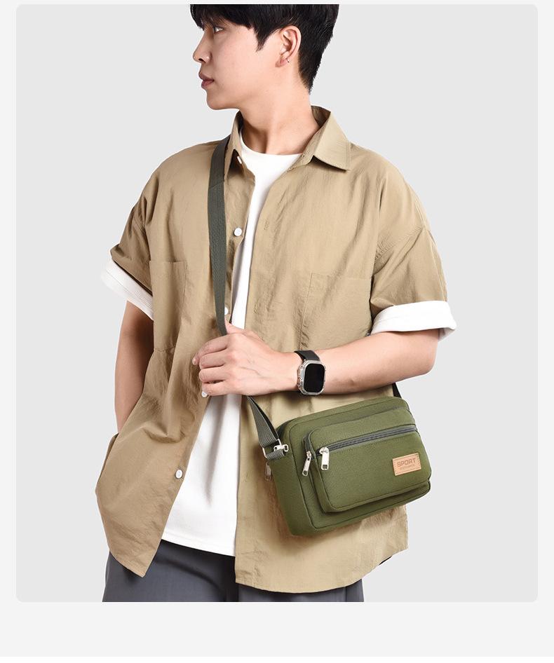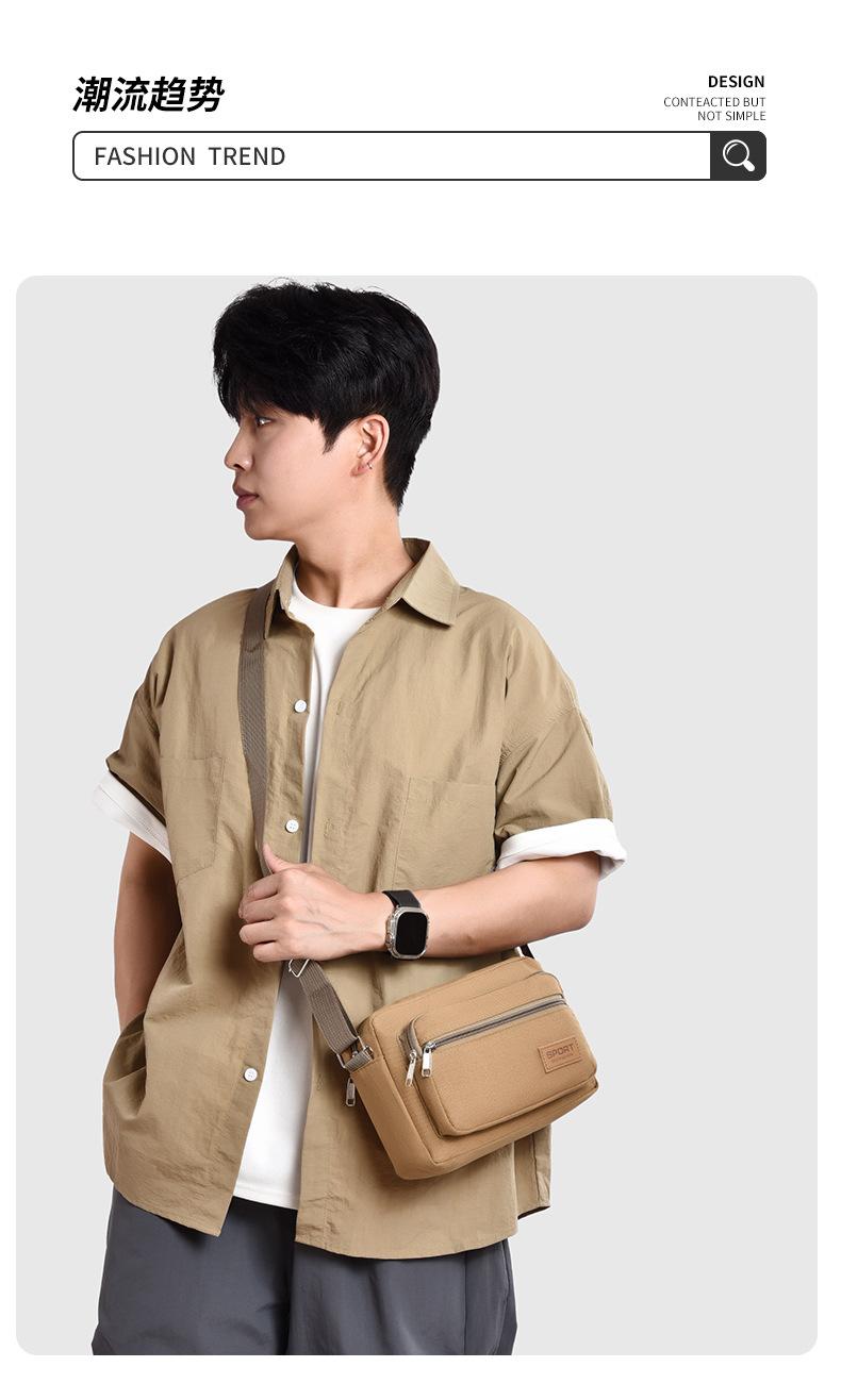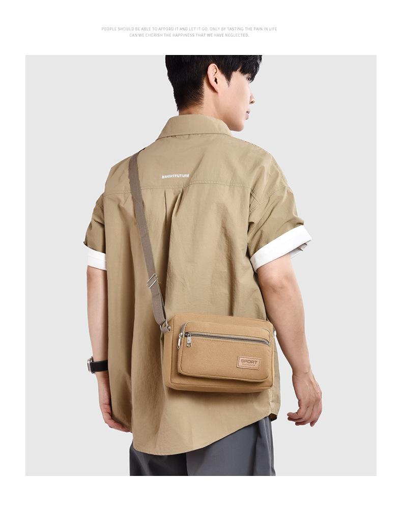Bolso de Hombro Casual para Hombre para Comercio Exterior, Bolso de Lona Simple para Viajeros, Bolso Cruzado con Logo Versátil de Moda, Duradero