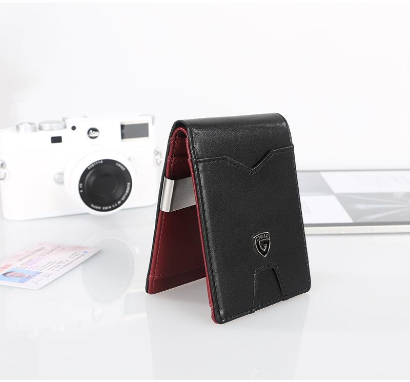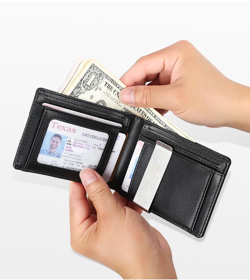 Billetera tarjetero ultrafina corta personalizada de fábrica para Europa y América, tarjetero con clip para billetes para hombre, tarjetero RFID