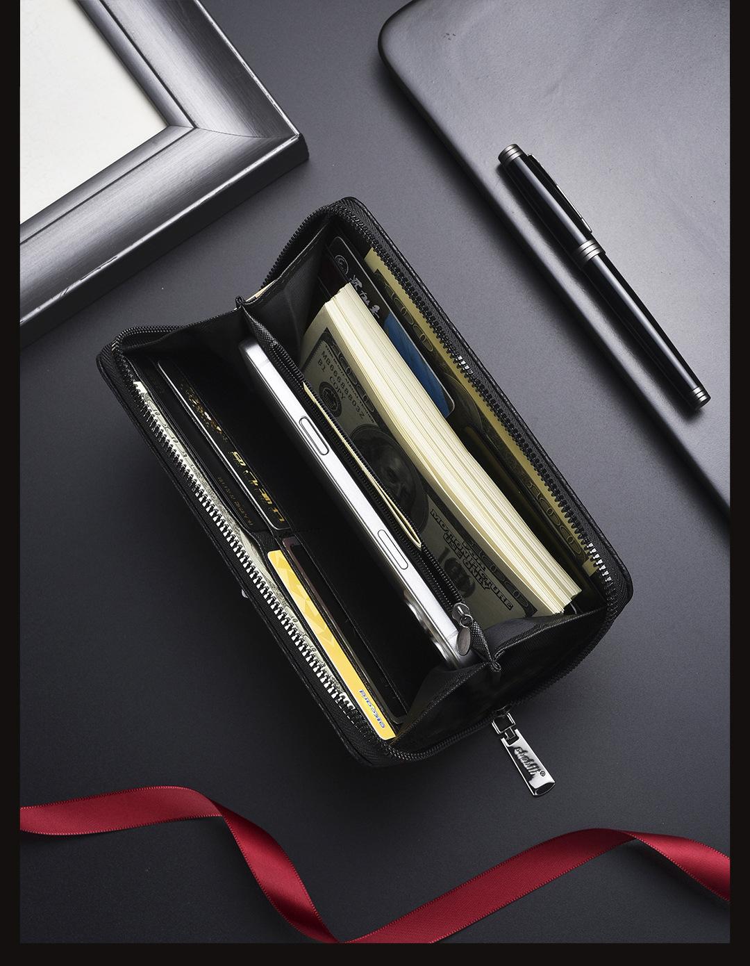 Nueva Billetera Larga para Hombre con Cremallera Pu Transfronteriza de Gran Capacidad Billetera para Teléfono Móvil Bolso de Mano Tarjetero para Hombre Venta al por Mayor de Fábrica