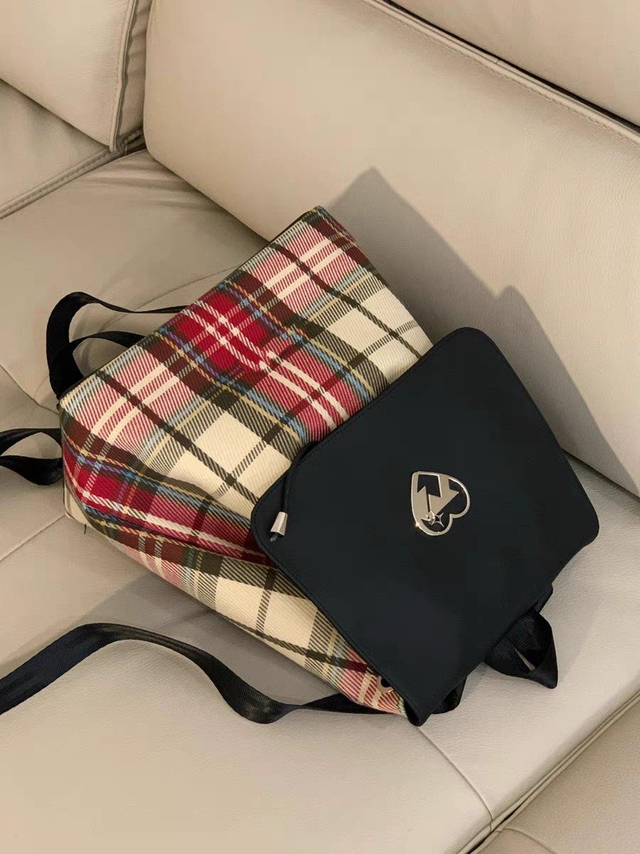 Bolsos para Mujer 2025 Nuevo Nicho Cuadros Gran Capacidad Versátil Bandolera para Viajero Mochila Cruzada Mochila Bolso Escolar para Mujer