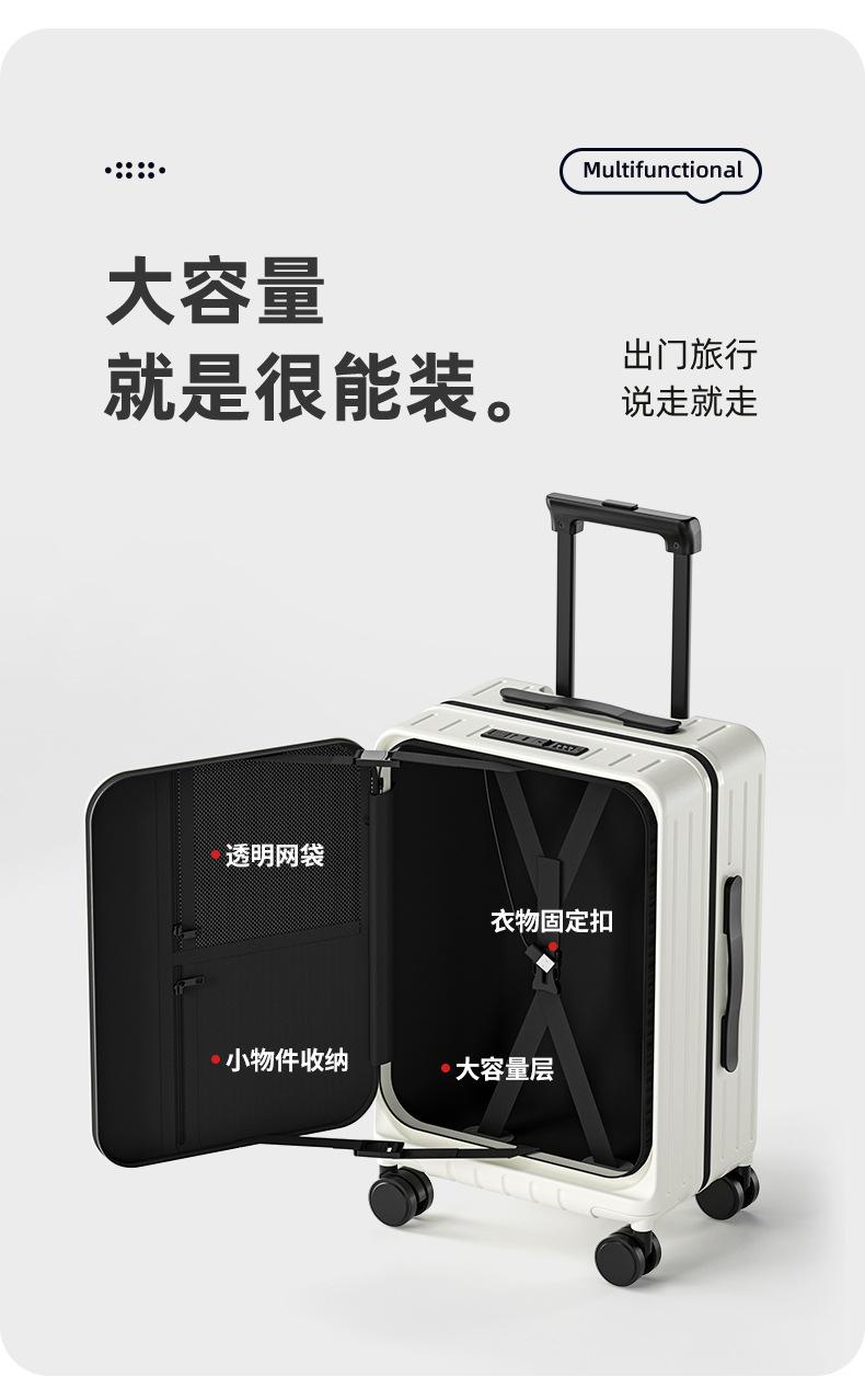 Maleta Multifuncional, Maleta de Aspecto Elegante y Duradera, Rueda Universal de 20 Pulgadas, Equipaje Ligero al Por Mayor, Caja con Contraseña de Apertura Lateral